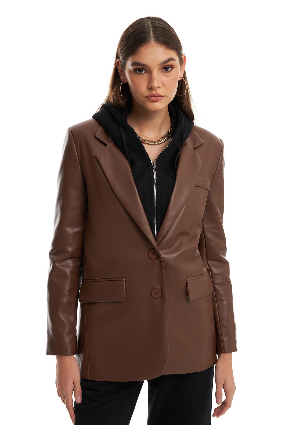 Blazer Deri Ceket Kahverengi