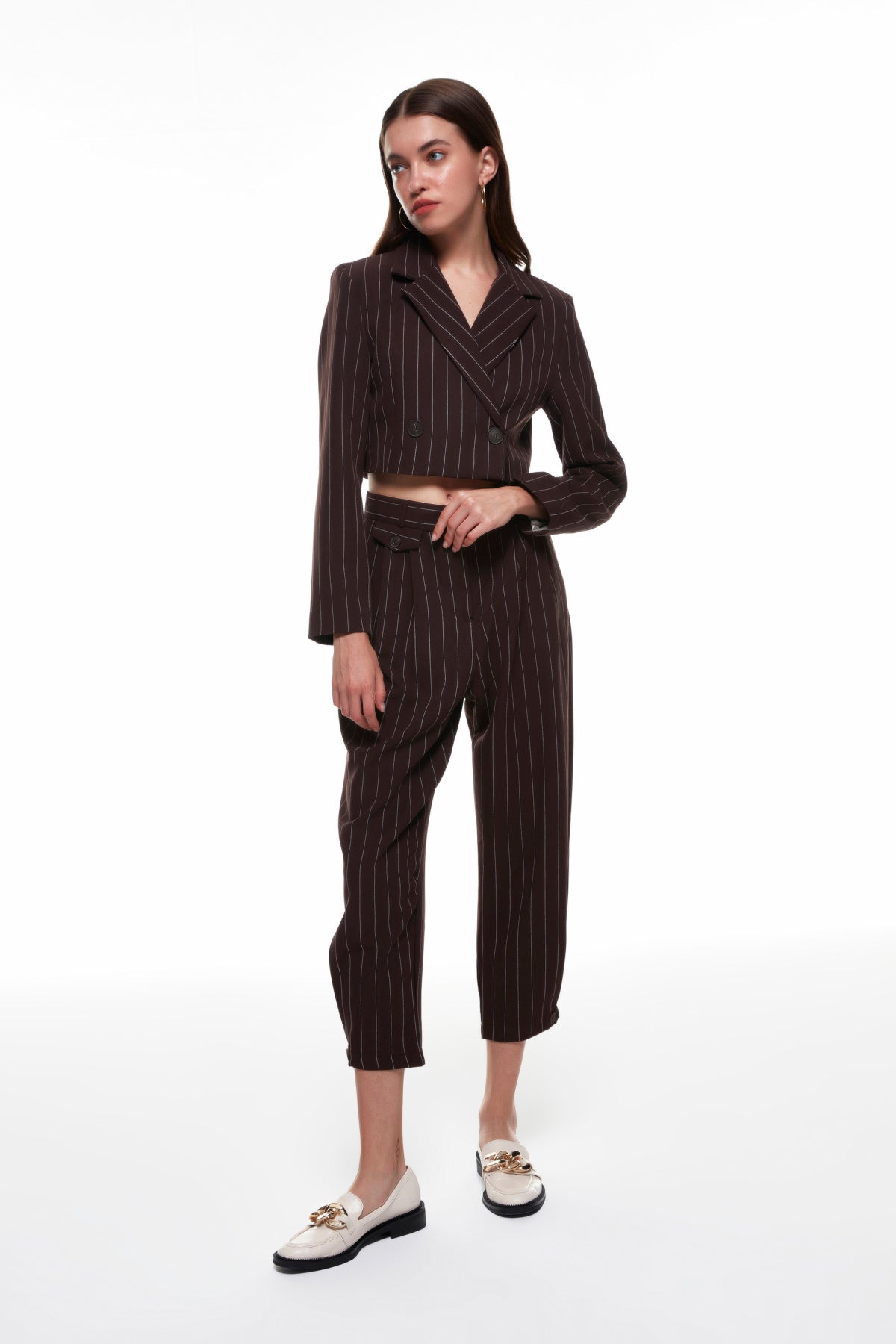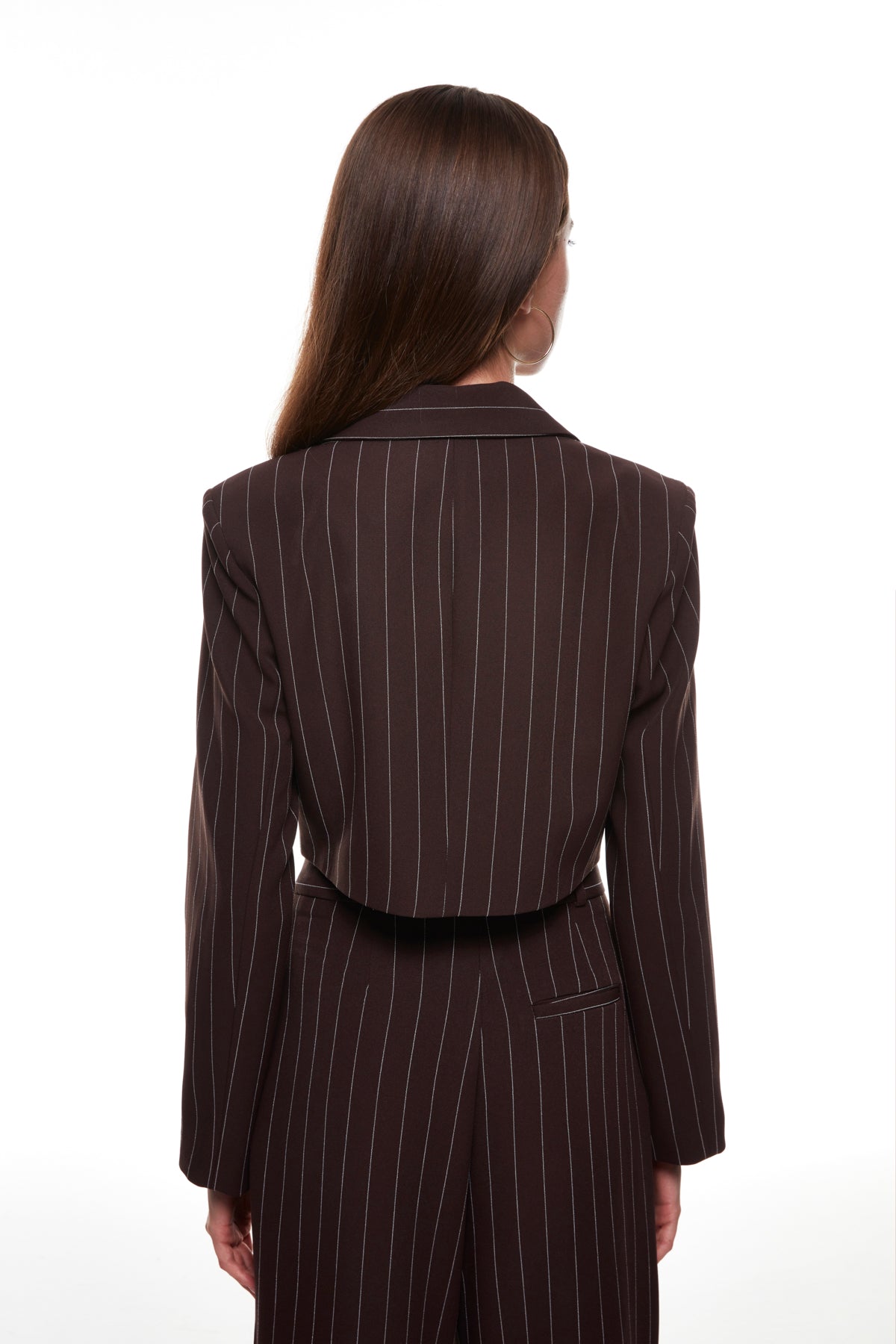 Çizgi Detaylı Crop Ceket Kahverengi
