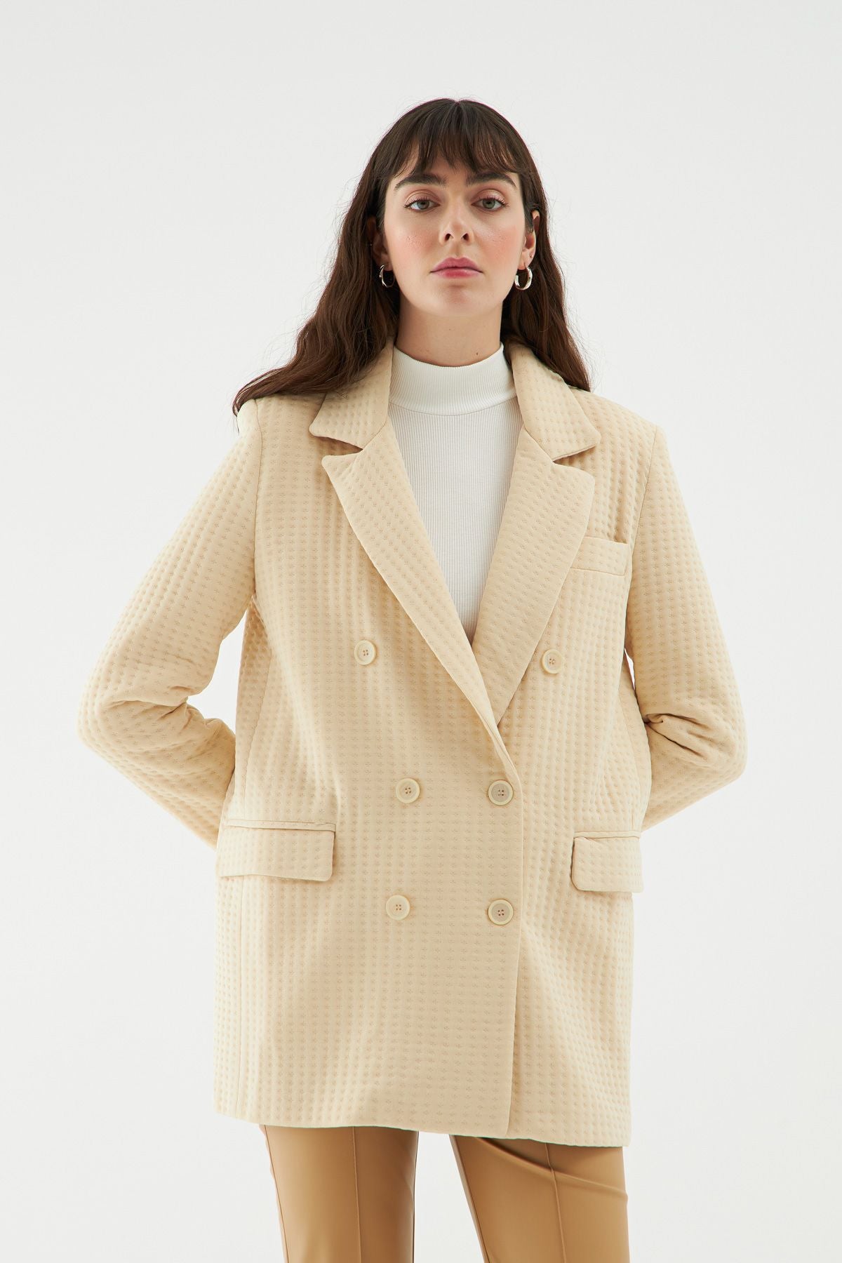 Dokulu Blazer Ceket Bej