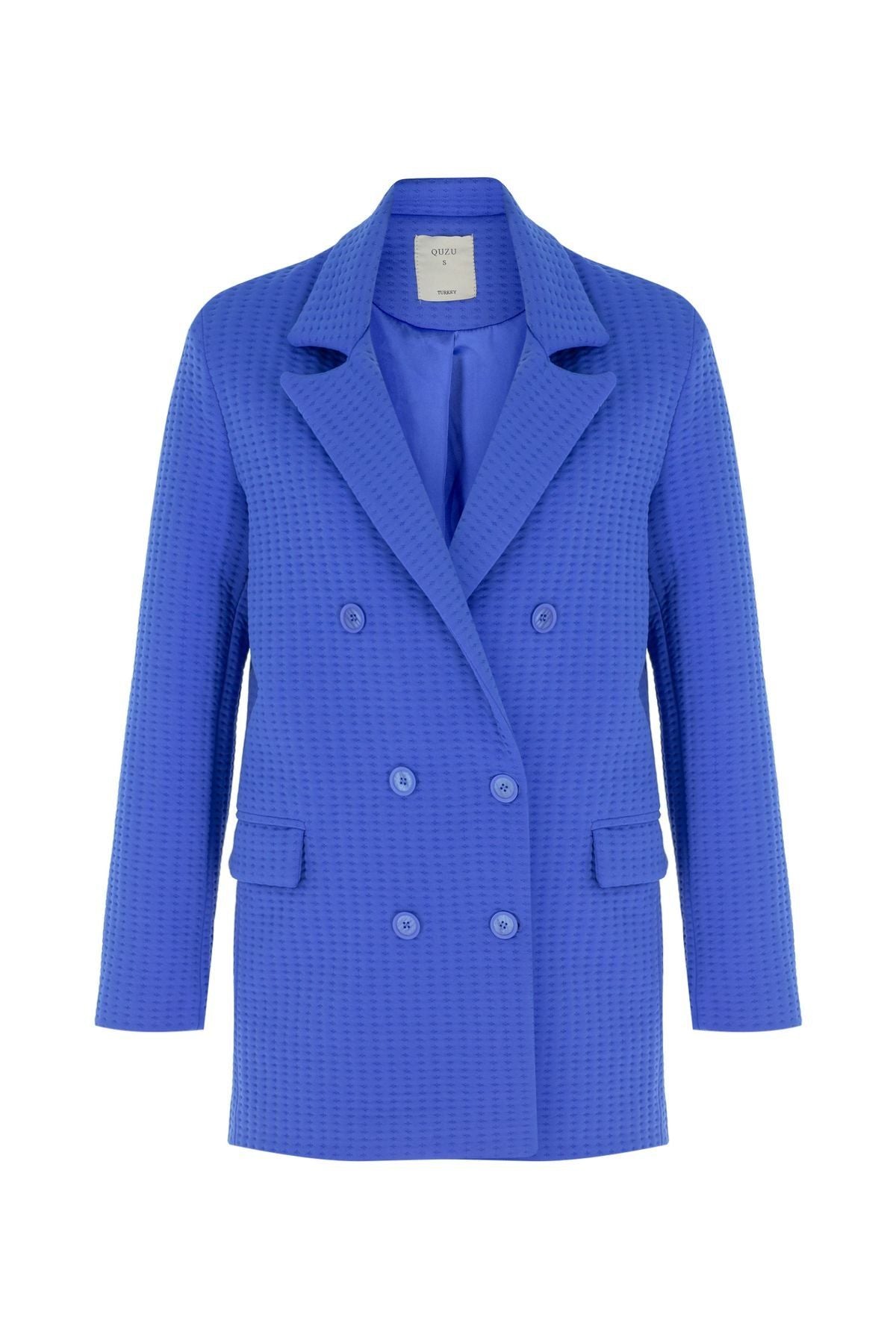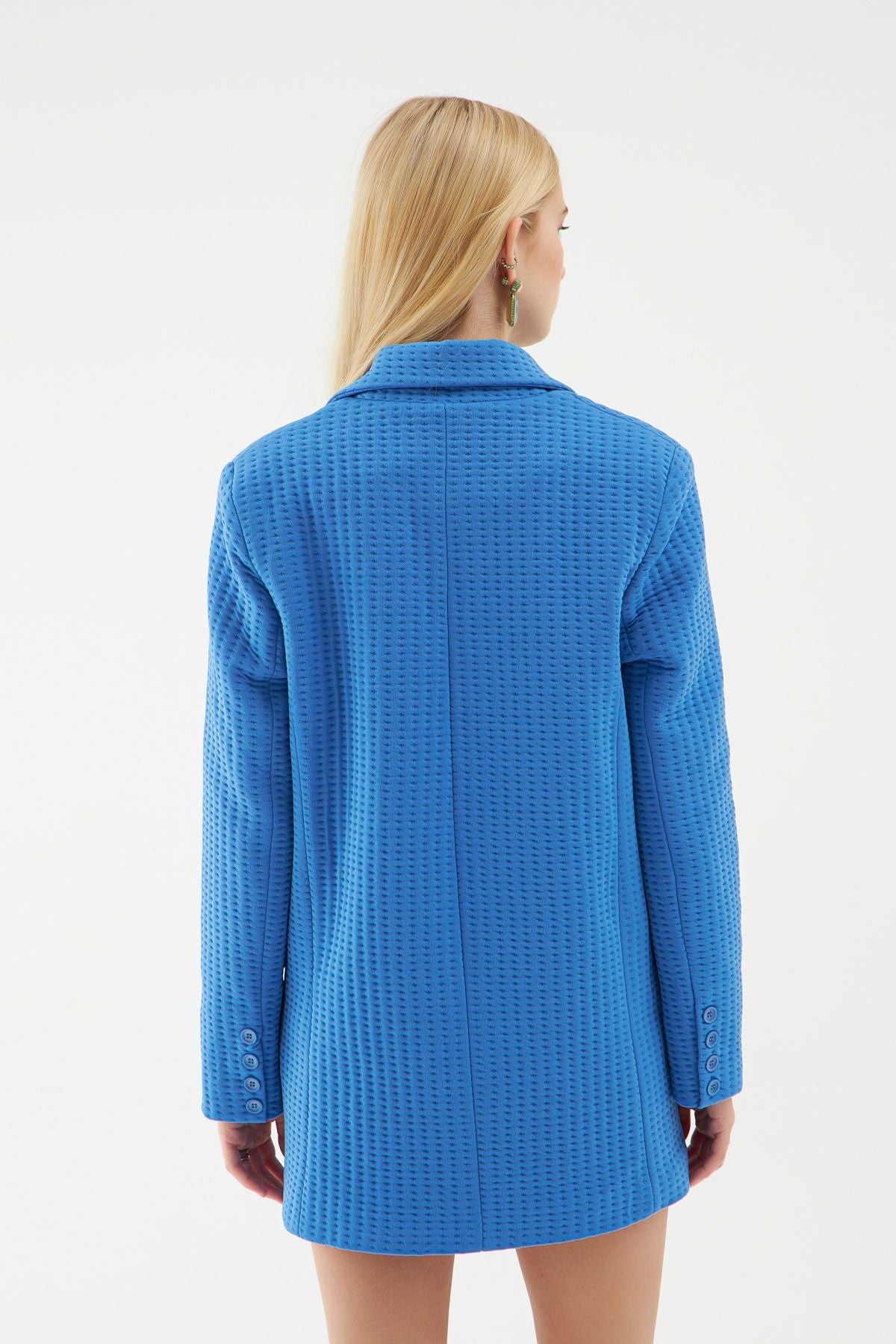 Dokulu Blazer Ceket Sax
