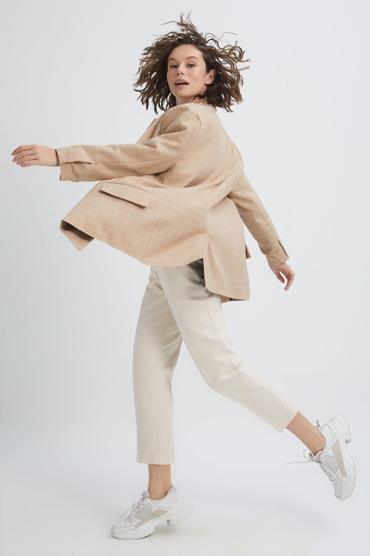 Klasik duruşunu kareli desen ile güçlendiren ve oversize duruşu ile yeniden yorumlayan ceket, ofis stilinde harikalar yaratsın.