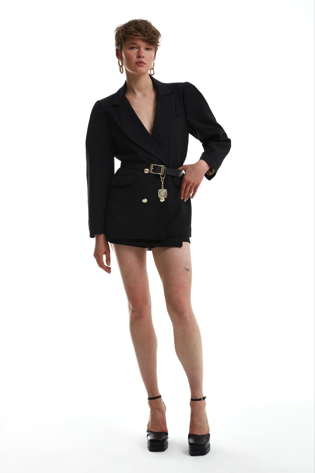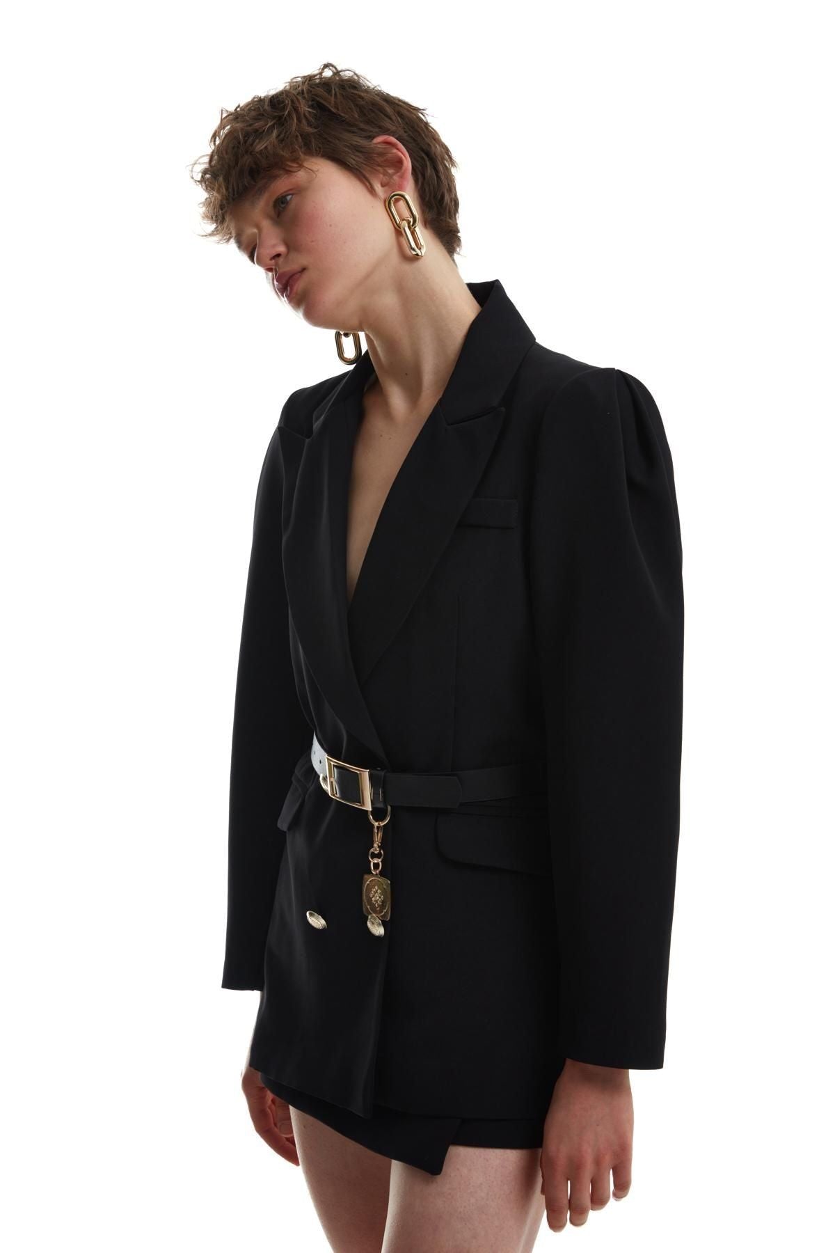 Kemer Detaylı Blazer Ceket Siyah
