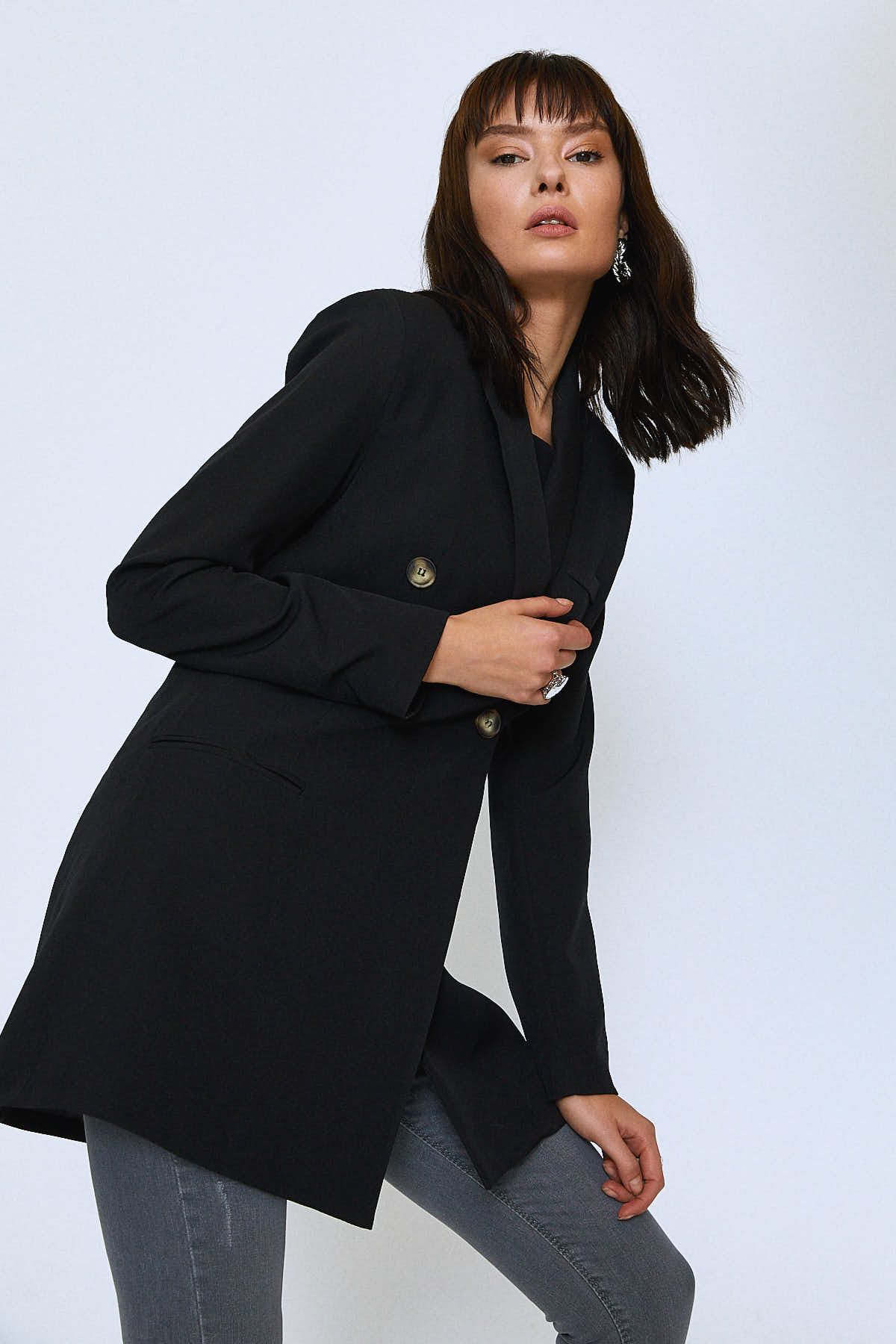 Kruvaze Blazer Ceket Siyah