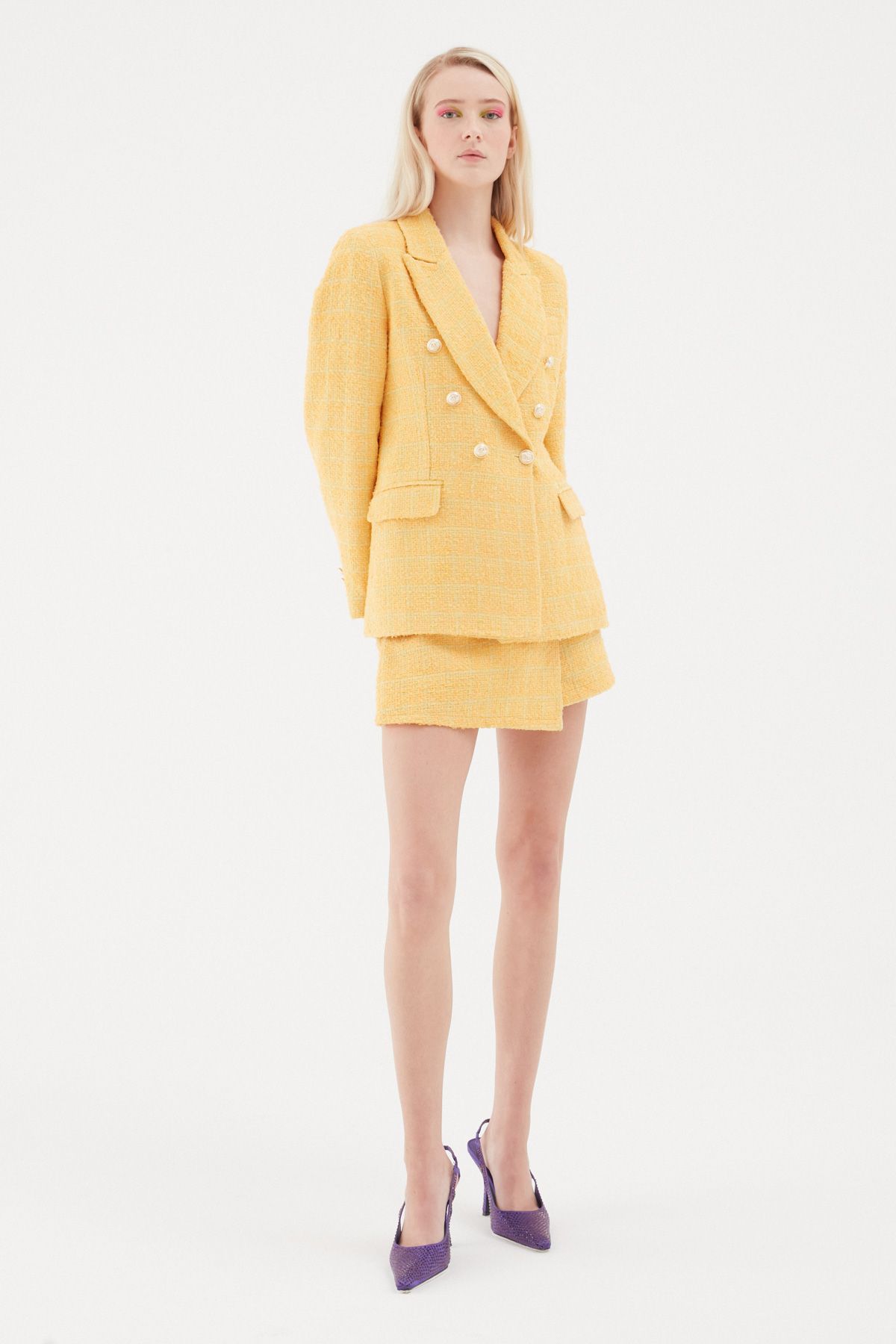 Kruvaze Tüvit Blazer Ceket Açık Oranj