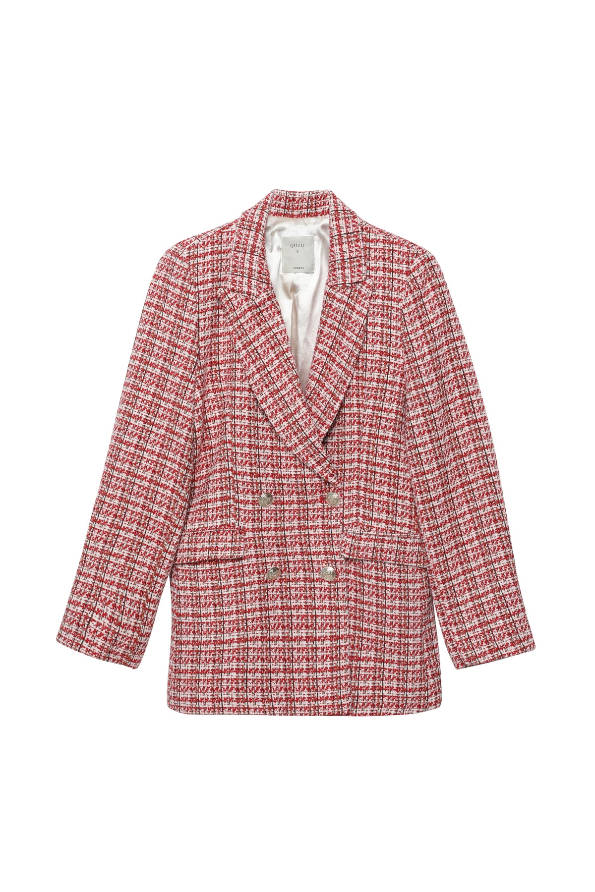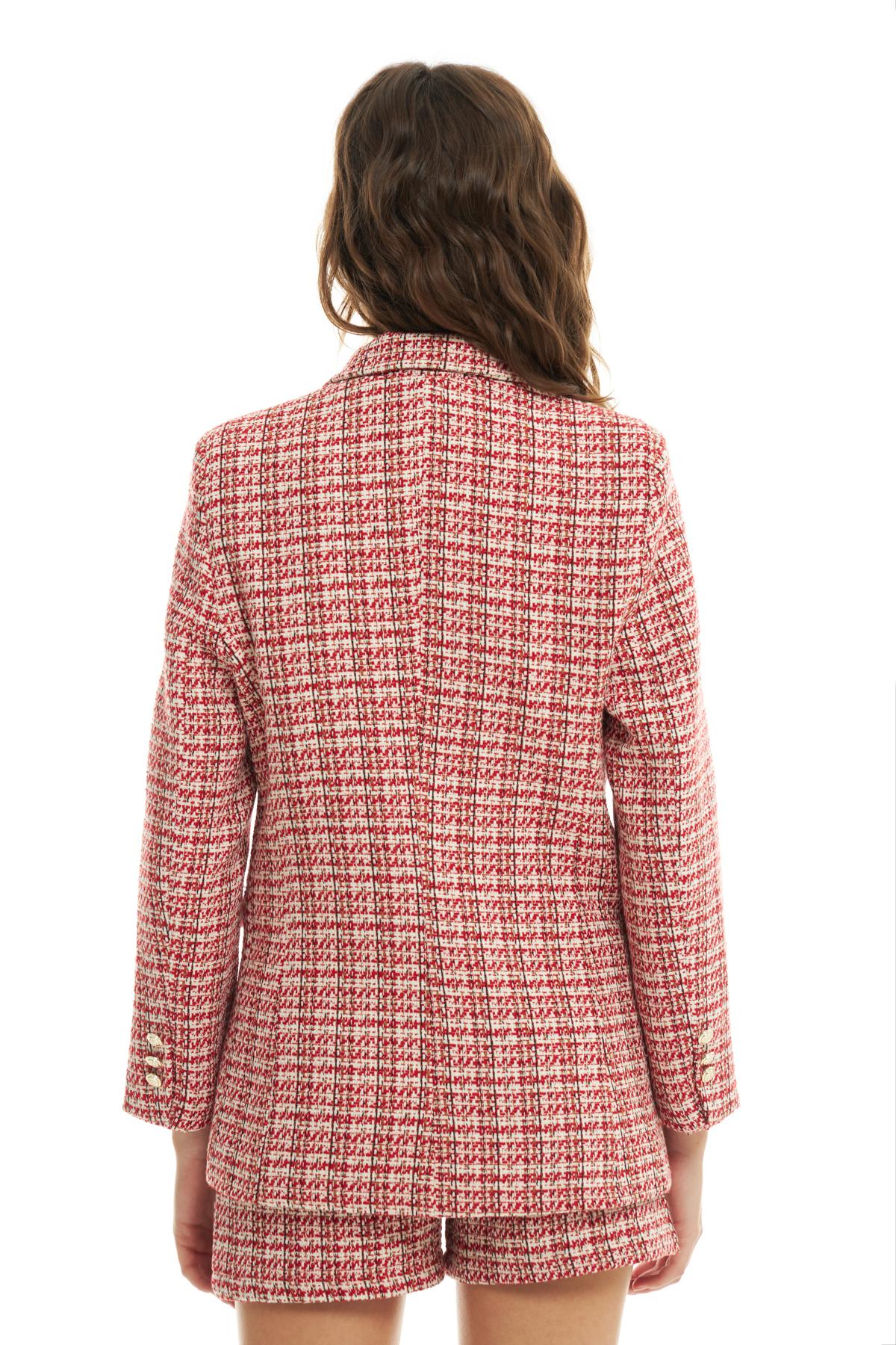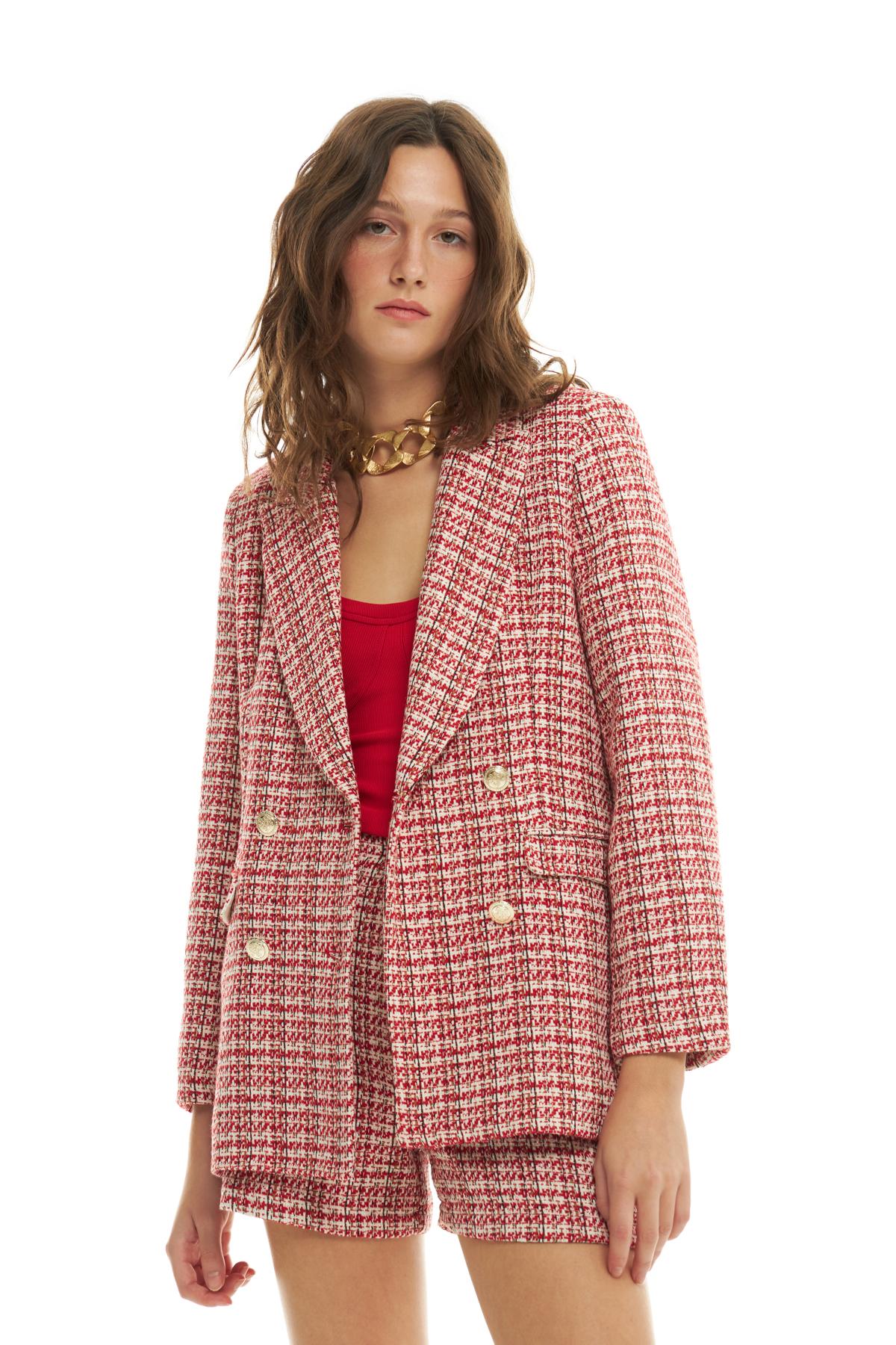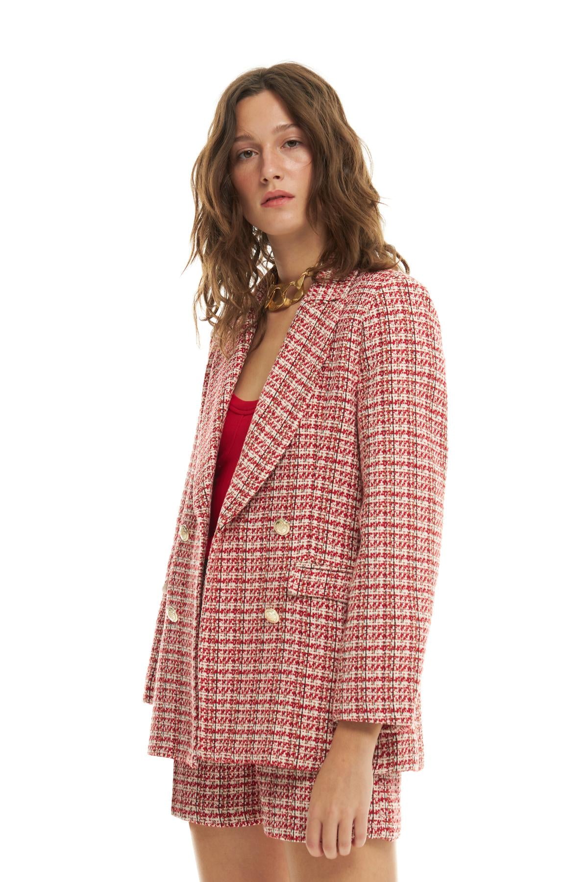 Kruvaze Yaka Düğme Detaylı Tüvit Blazer Ceket Kırmızı