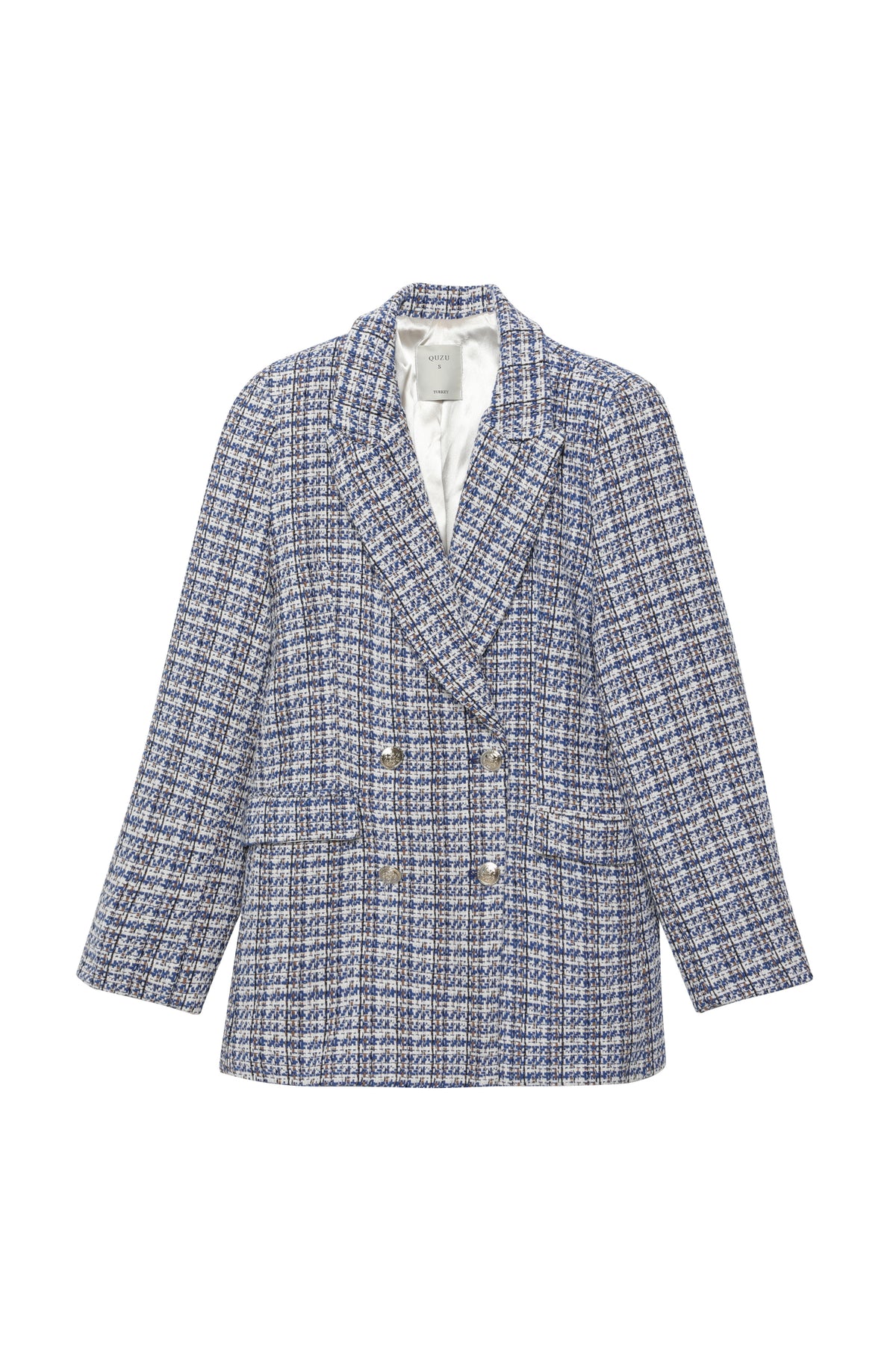 Gold düğme detaylı, İçİ krem renk astarlı, uzun kollu, İkİ ceplİ, slİm fİt, kruvaze yaka, vatkalı, tüvİt blazer ceket.