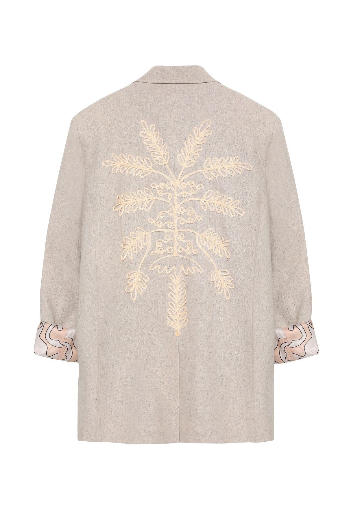 Sırtı Nakış Detaylı Keten Blazer Ceket Naturel