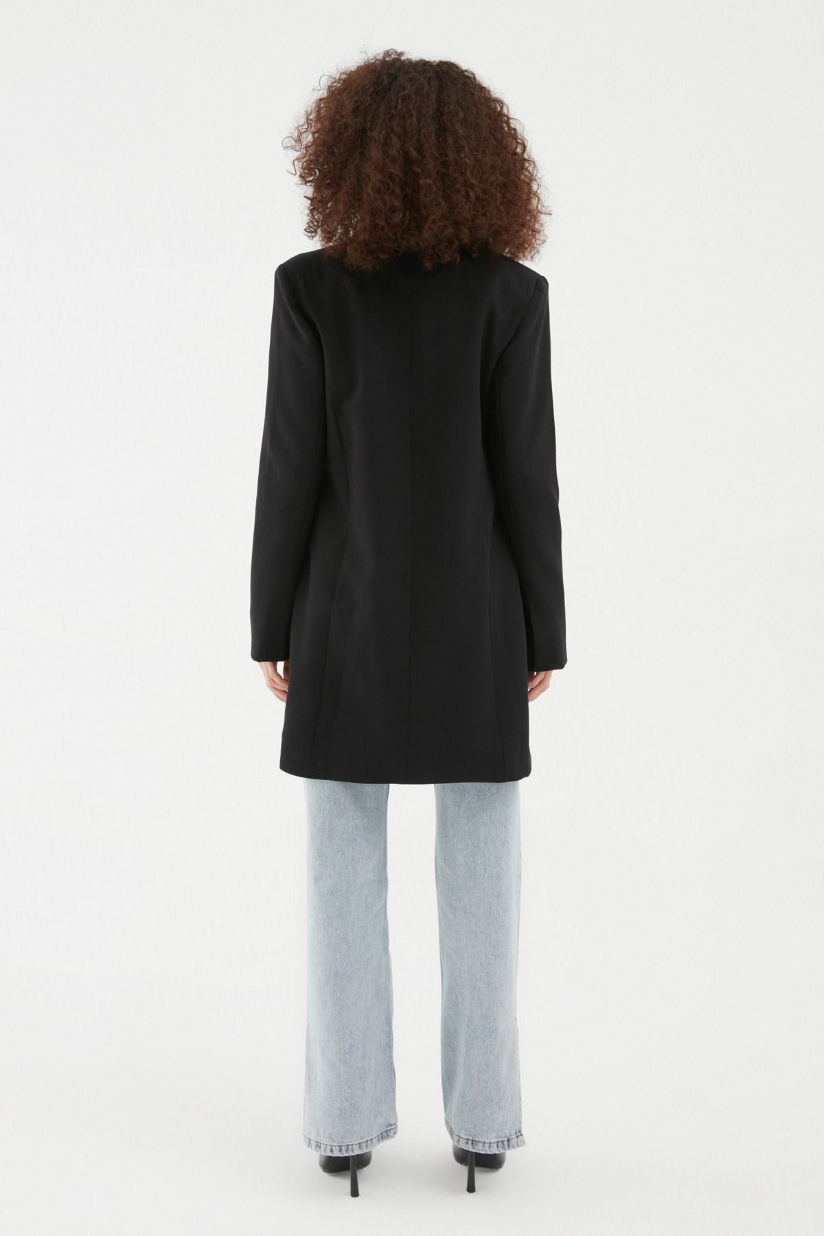 Yanı Yırtmaçlı Uzun Blazer Ceket Siyah