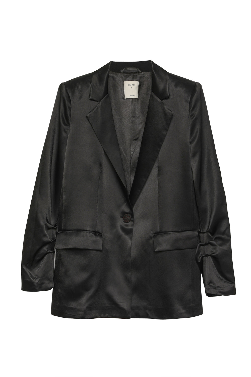 Kruvaze Saten Blazer Ceket Siyah