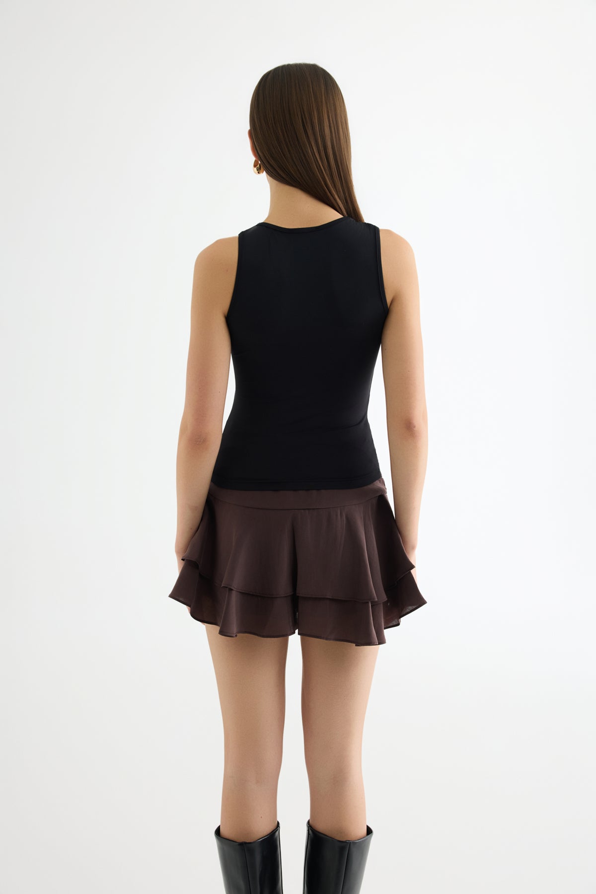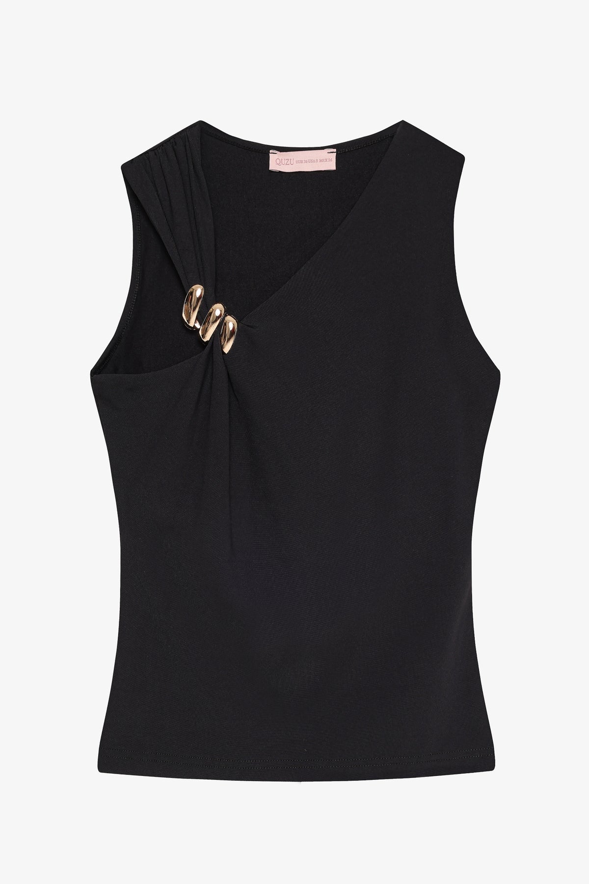 Asimetrik Yaka Metal Aksesuarlı Bluz Siyah