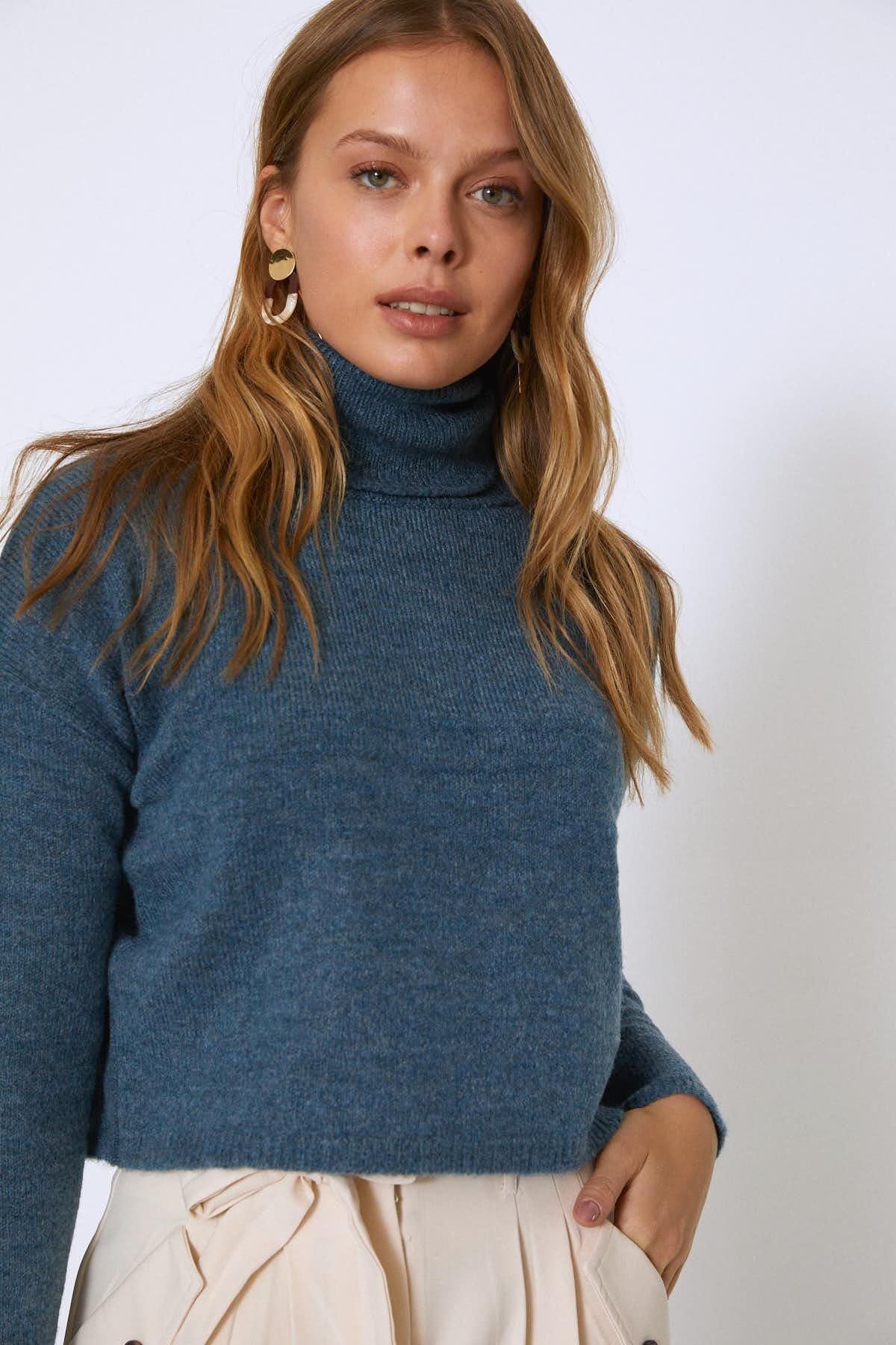 Boğazlı yakası ile seni, şık formu ile tarzını ısıtacak kazak, aradığın kış şıklığını kolayca yakalamanı sağlıyor. Boğazlı kazağı eteklerle ve pantolonlarla kombinleyebilirsin.