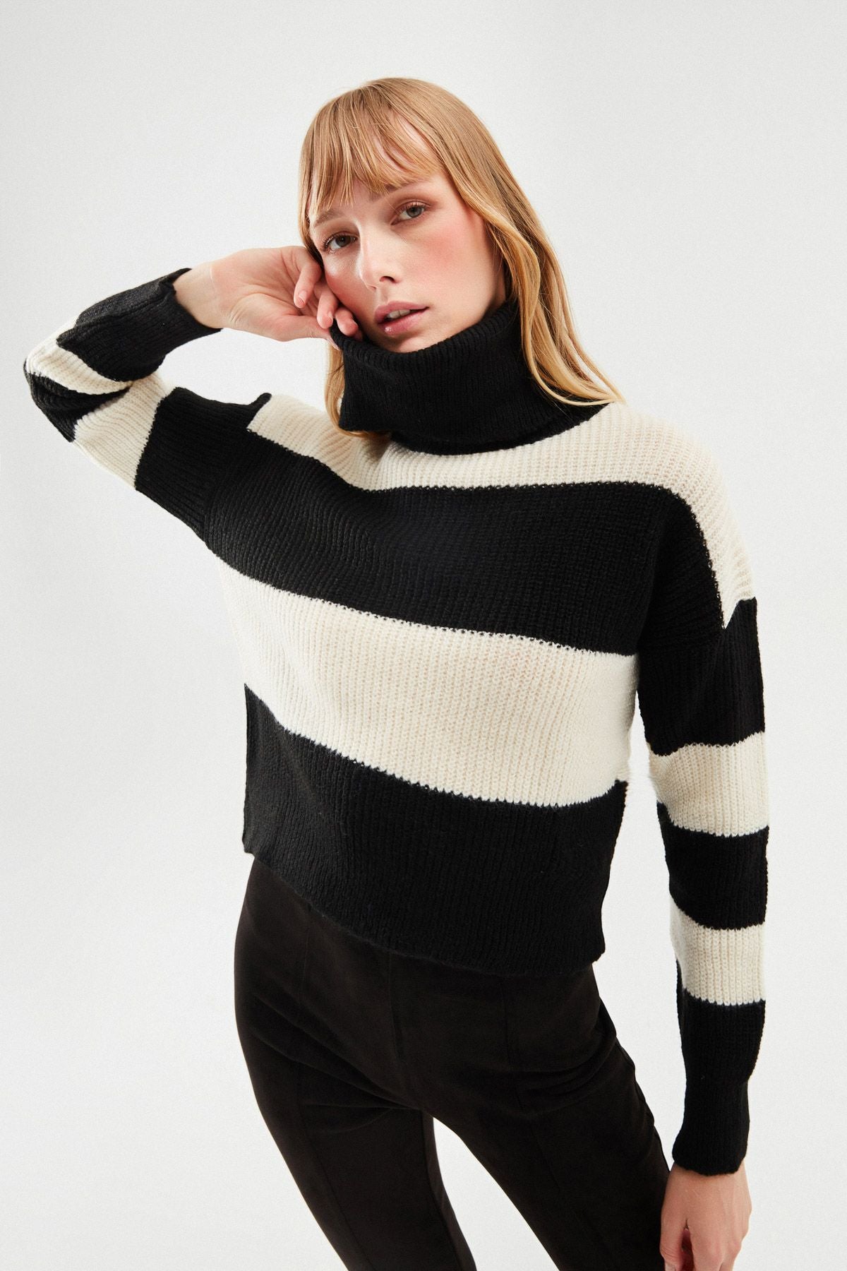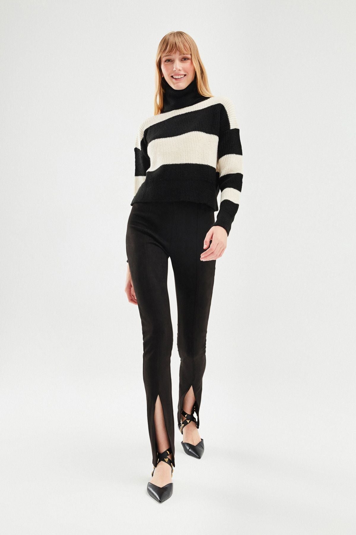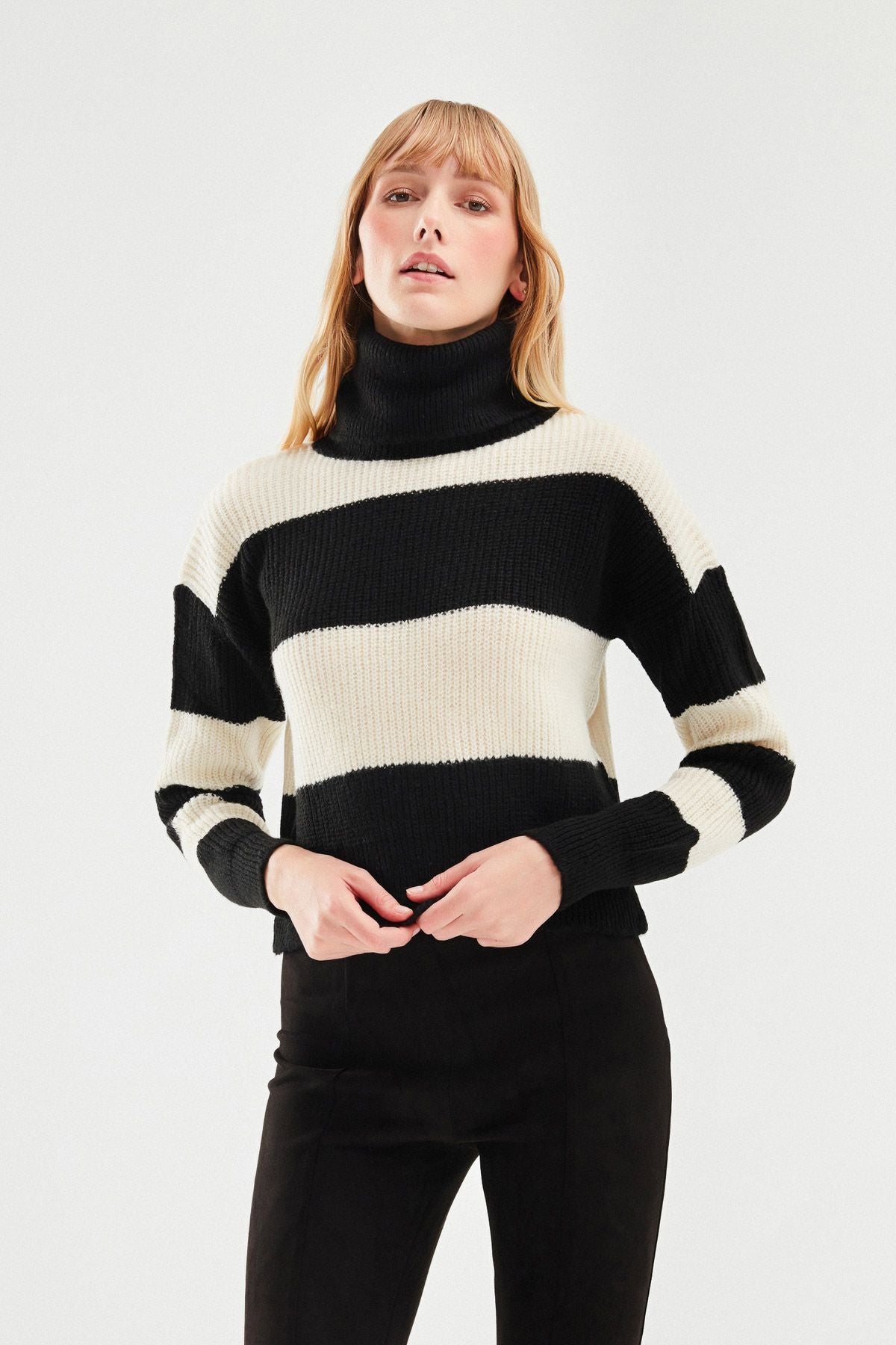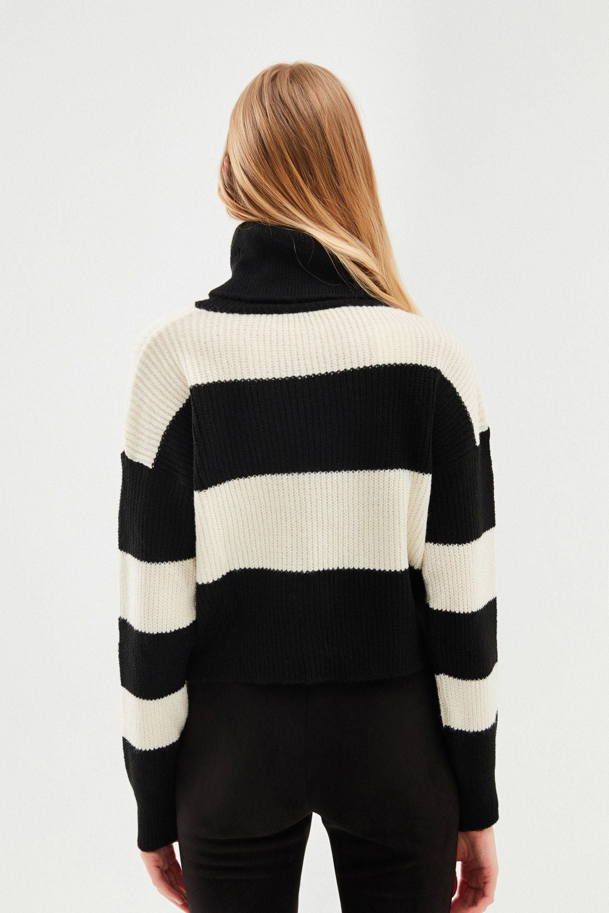 Çizgili Triko Kazak Siyah