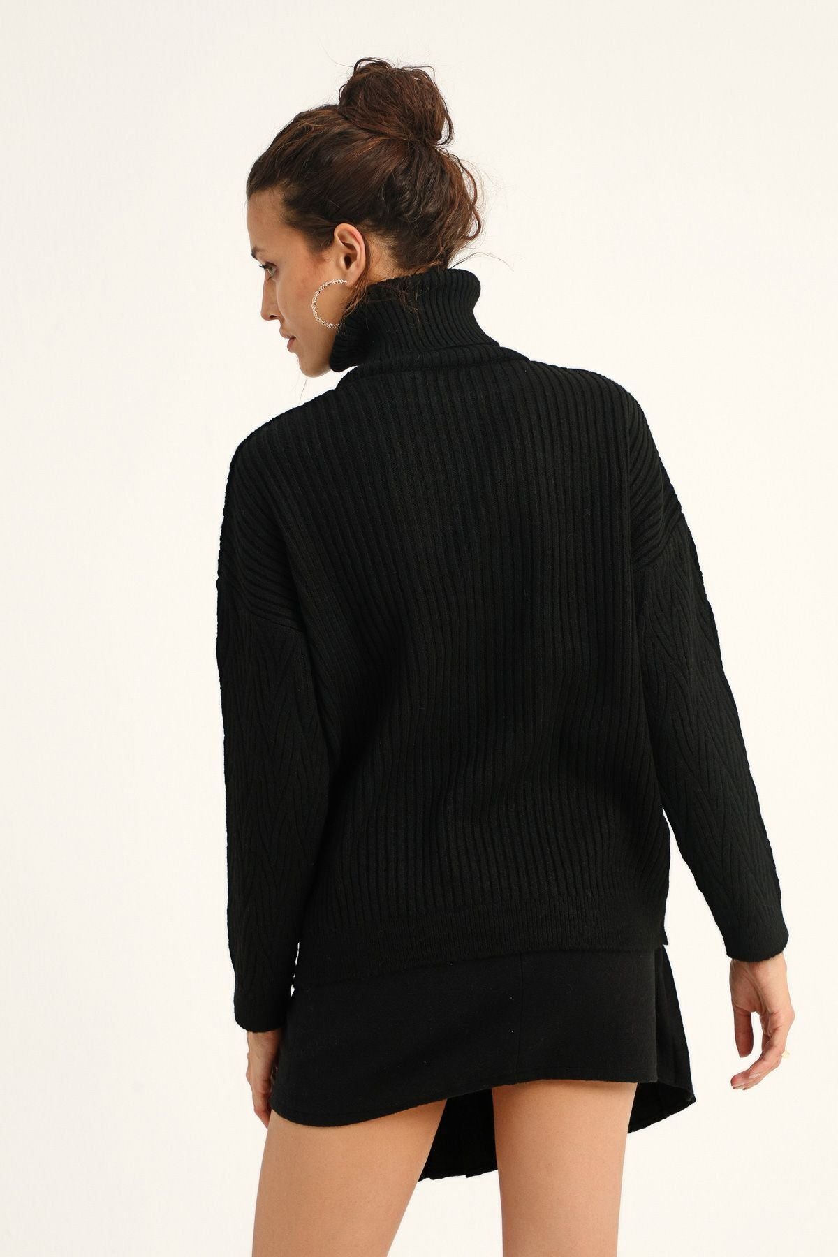 Desenli Boğazlı Kazak Siyah
