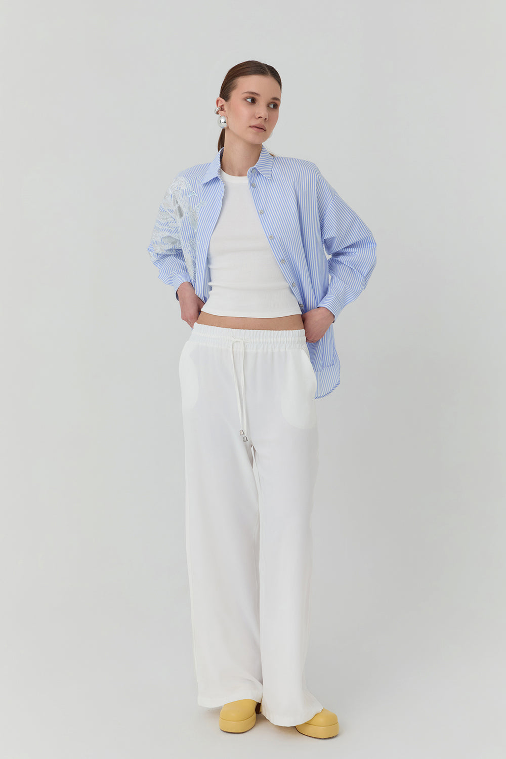 Beli Lastikli Bol Paça Pantolon Beyaz