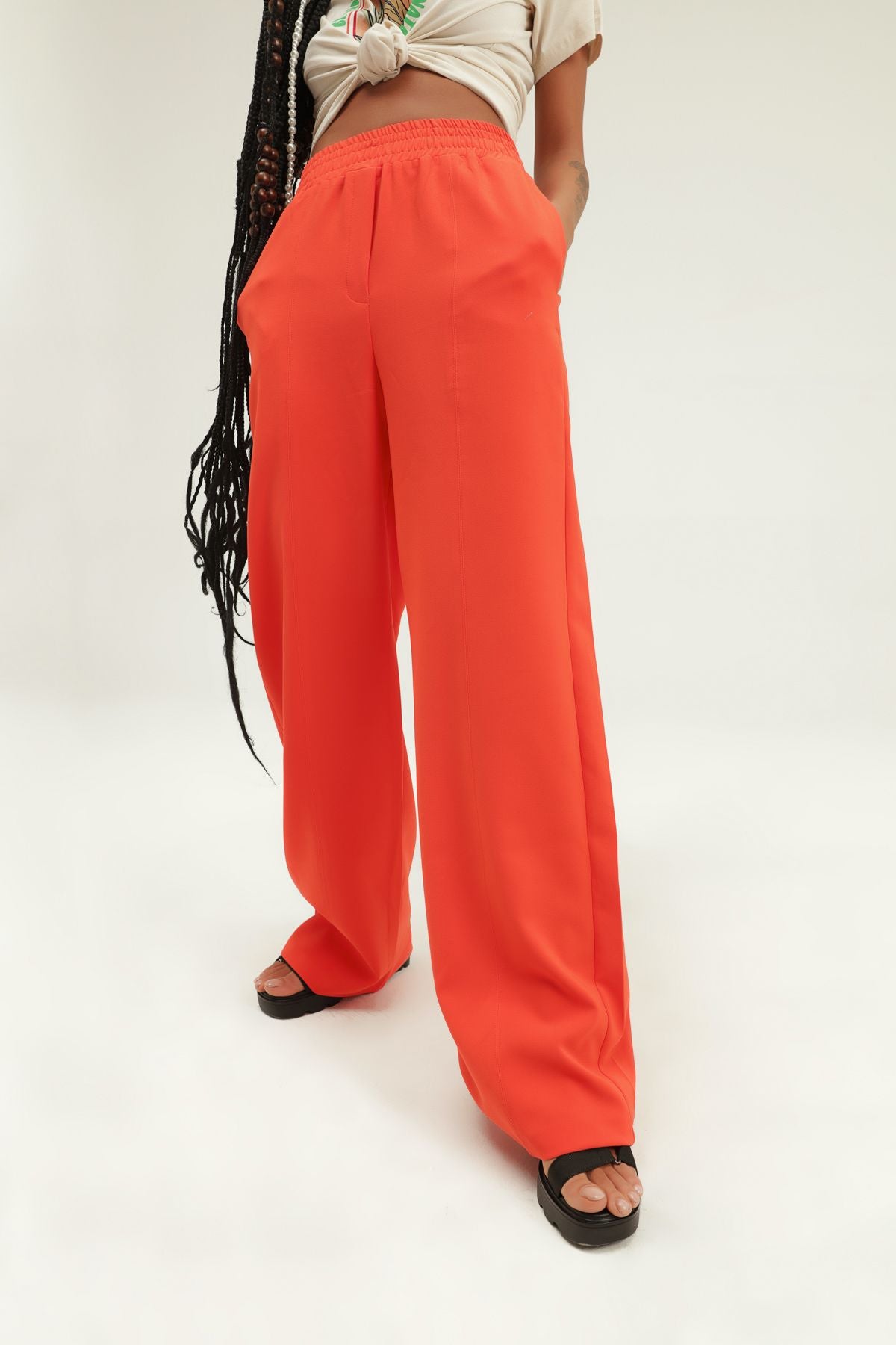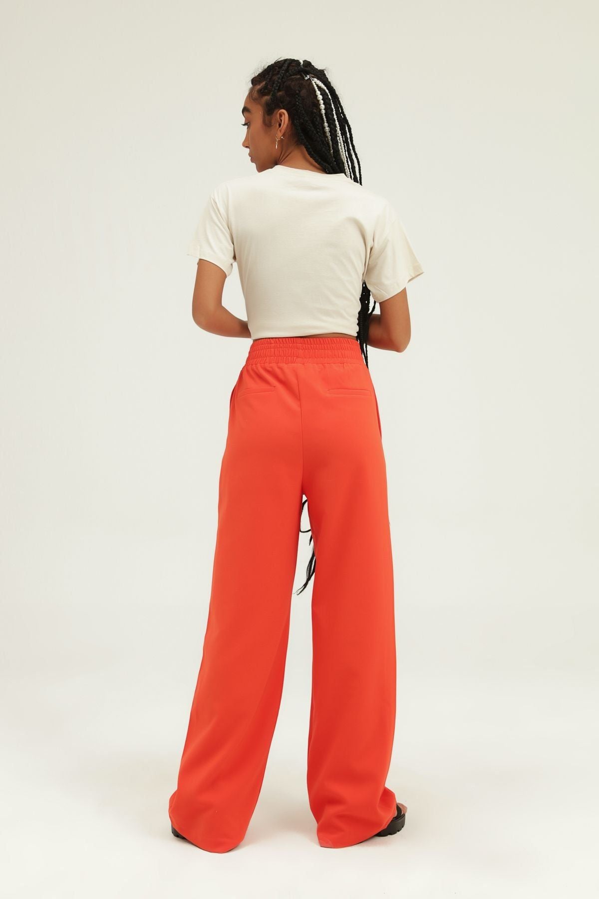 Beli Lastikli Bol Paça Pantolon Turuncu