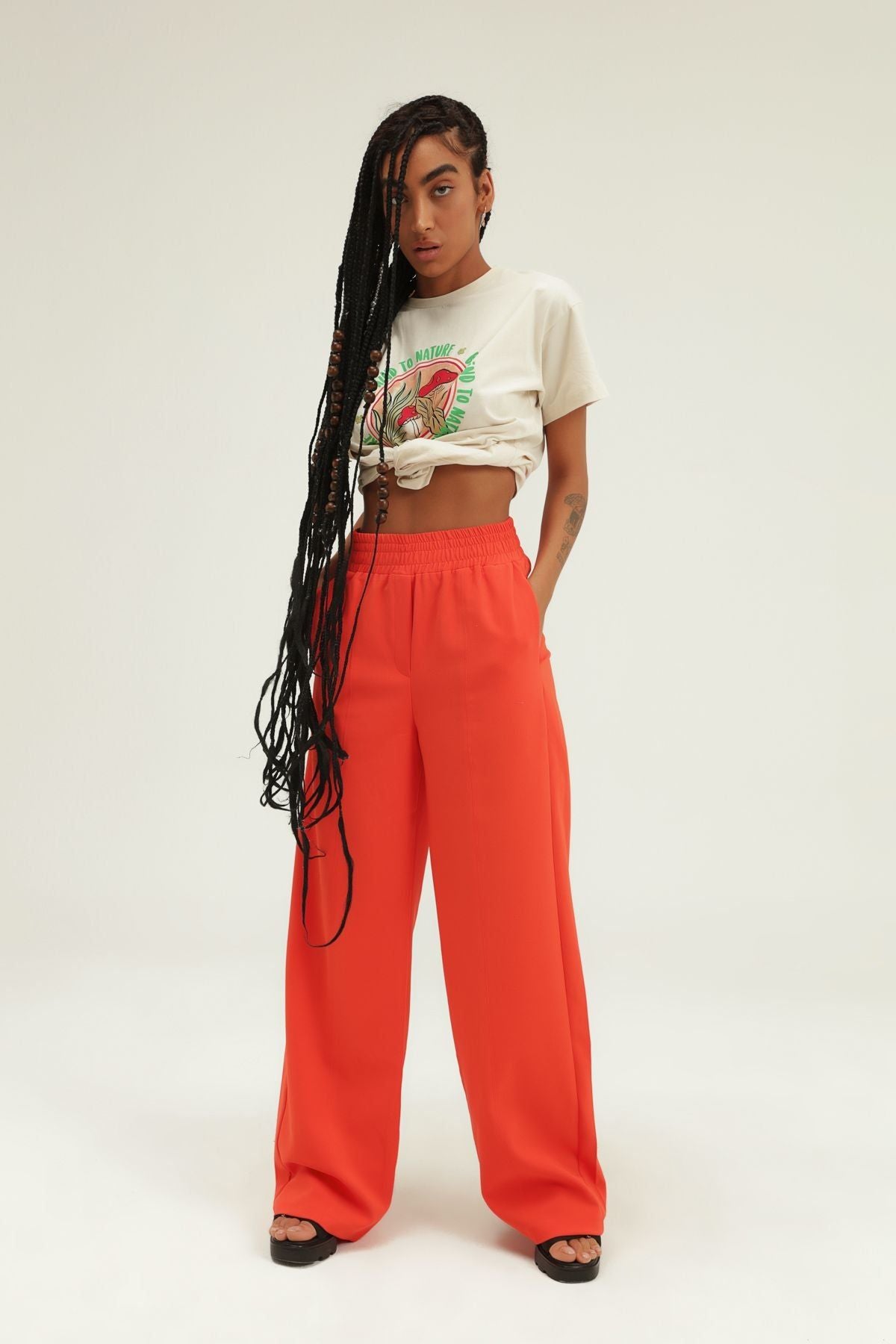 Adımlarına ekstra konfor ve özgürlük katacak bol paça pantolon modeli senin olmayı bekliyor! Beli lastikli bol paça pantolon modeli ile bir araya getireceğin crop tişörtlerin ve braletlerinle mükemmel uyumu yakalarken kombinlerine de hareket katabilirsin!