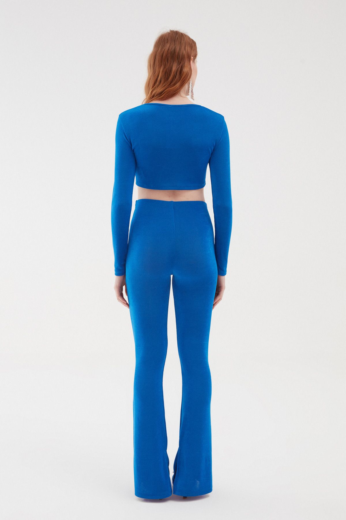 İç paçası yırtmaç detaylı pantolon modeli yırtmaç detayının yanı sıra kendine has detayları ile stilini ön plana çıkarmanda öncülük ediyor. Dikkat çekici simli dokusu ile tarzını zirveye taşımaya hazırsan hafif parlak dokulu bedenini saran yüksek bel pantolon modeline dolabında mutlaka yer vermelisin! Hem esnek kumaş ve rahat kesimli hem de farklı doku görünümlü bol paça pantolon modelini aynı renk ve dokuda olan bluz modelimiz kombinleyerek davetlerde stilinle fark yaratabilirsin.