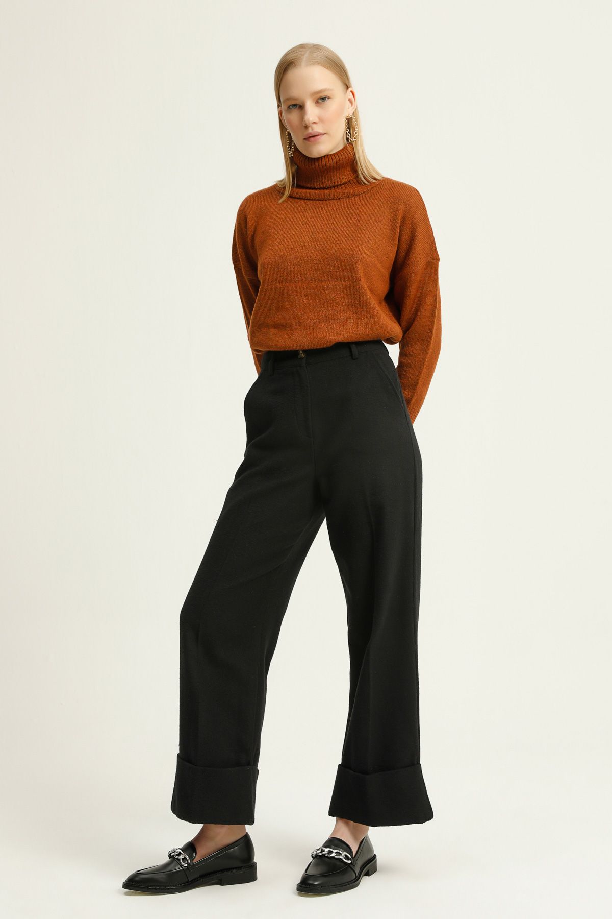 Ofis kombinleri yaparken basic parçalardan vazgeçemiyorsan, duble paça kaşe pantolon modeli ile mükemmel ikili olabilirsin! Modası hiç geçmeyen bol paça pantolon modellerine boğazlı trikolar ve çizmeler eşlik ederken, sen de bu birlikteliğin tadını çıkarabilirsin…