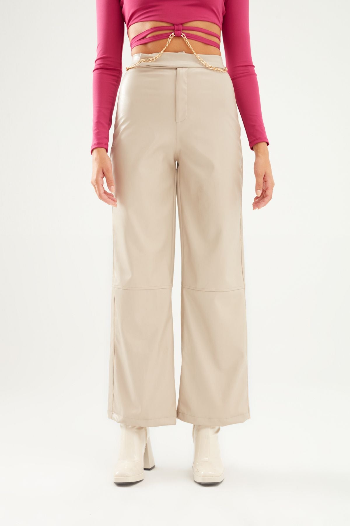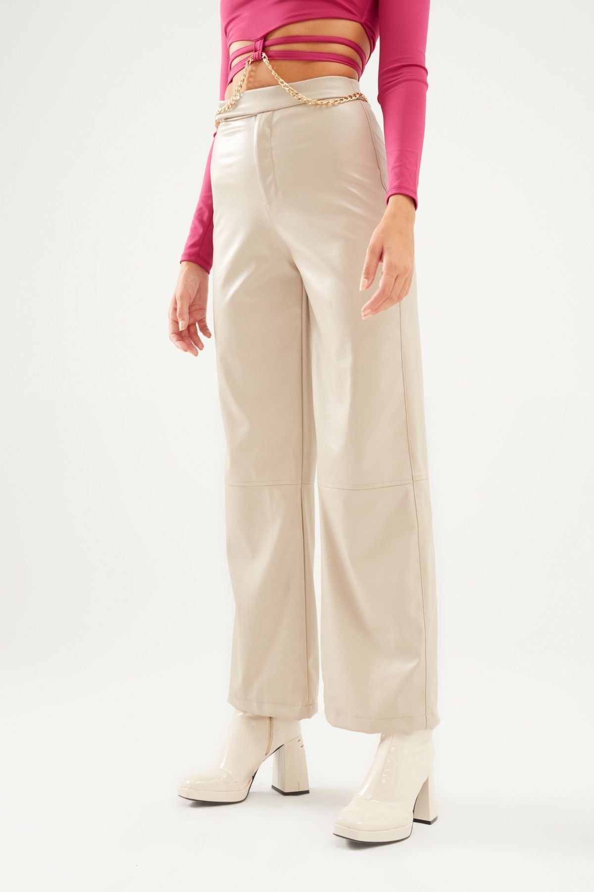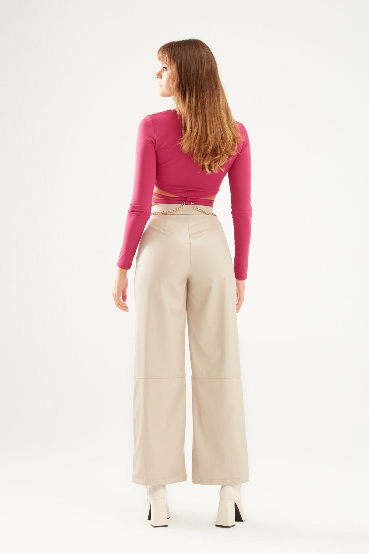 Gündüz ve gece tercih edebileceğin deri pantolon modeline harika bir kalıp ekledik! Sonbahar ve kış aylarında kullanabileceğin, parlak deri dokulu ve geniş paça deri pantolon modelini uzun hırka, salaş kazak ve şık bluz ile kombinleyebilirsin. Yüksel bel model deri pantolonu crop bluz ile kombinleyerek ayrı bir şıklık yaratabilirsin.