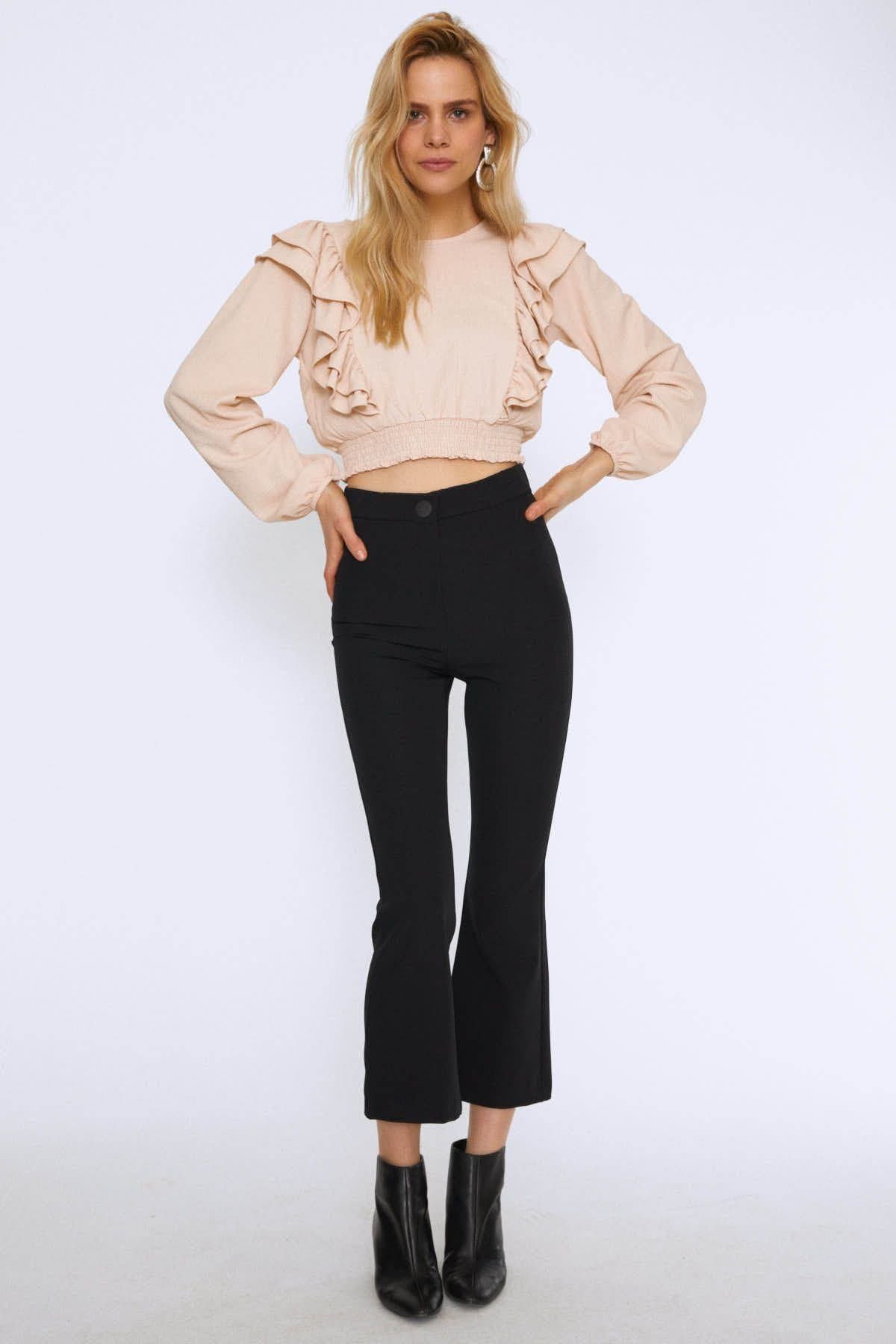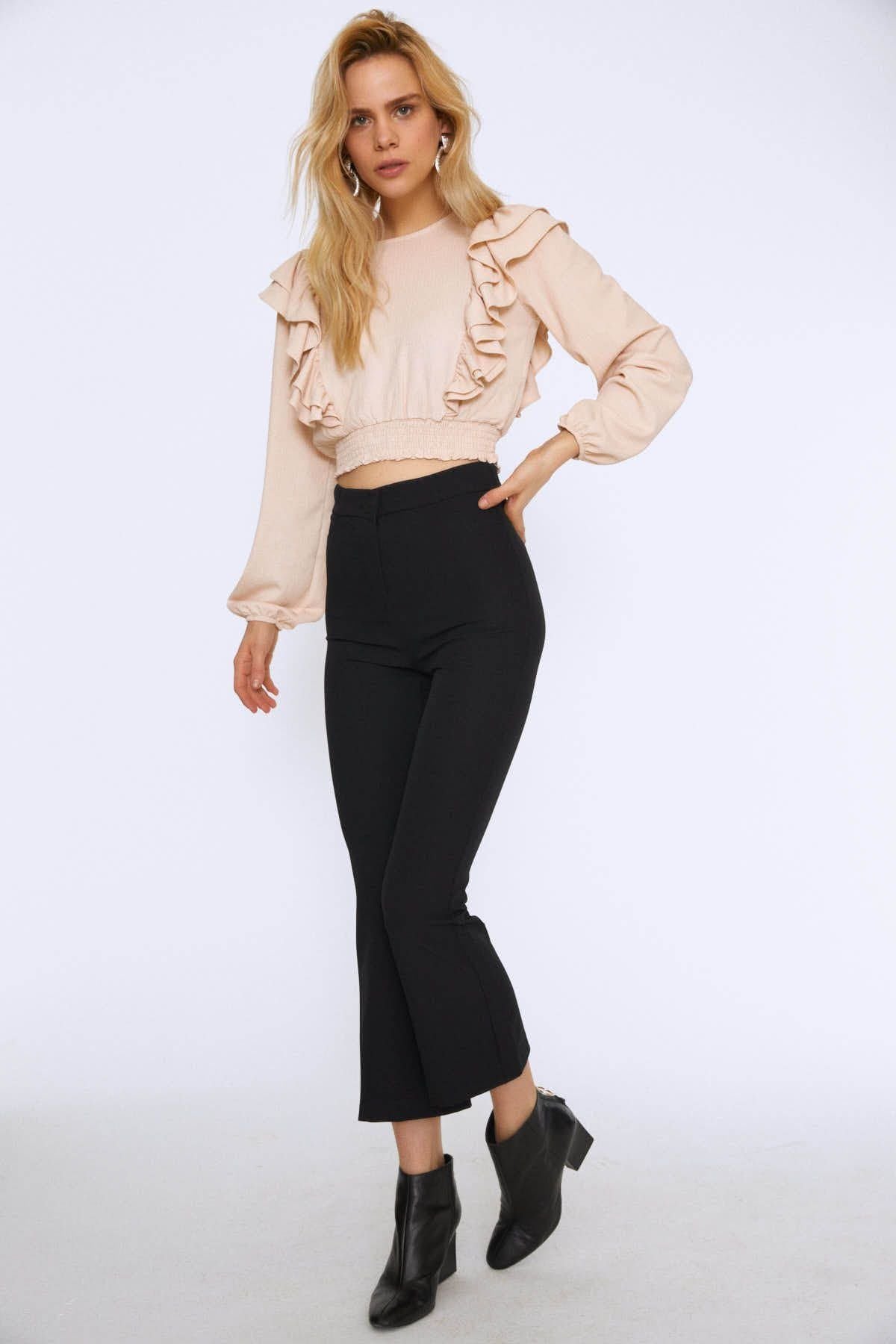 İspanyol Paça Pantolon Siyah