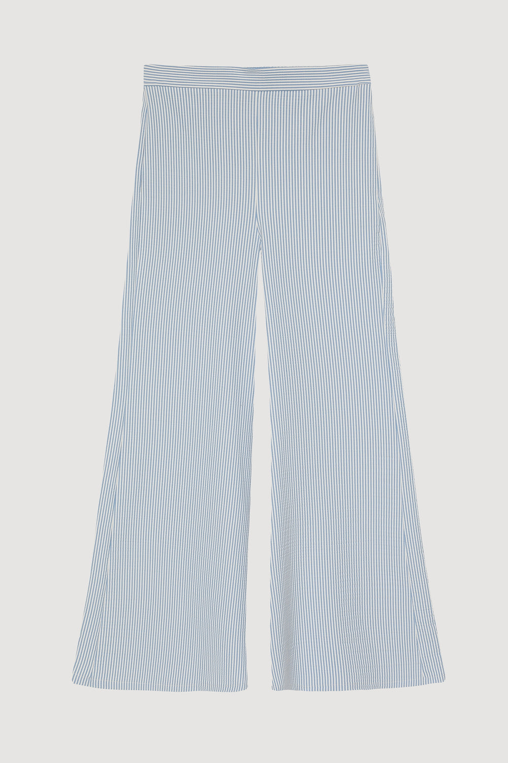 İnce Çizgili Bol Paça Pantolon Mavi