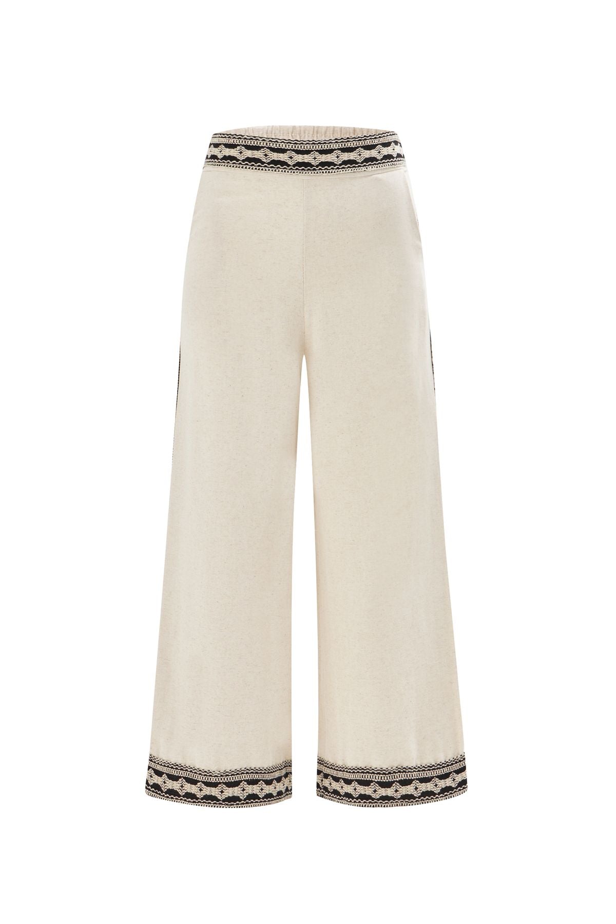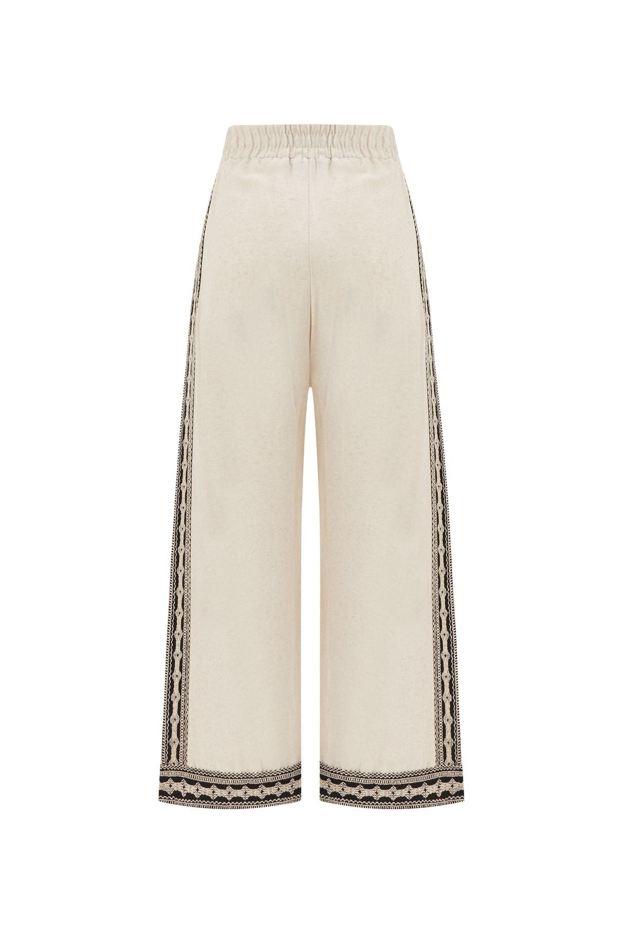 Şerit Detaylı Keten Pantolon Naturel