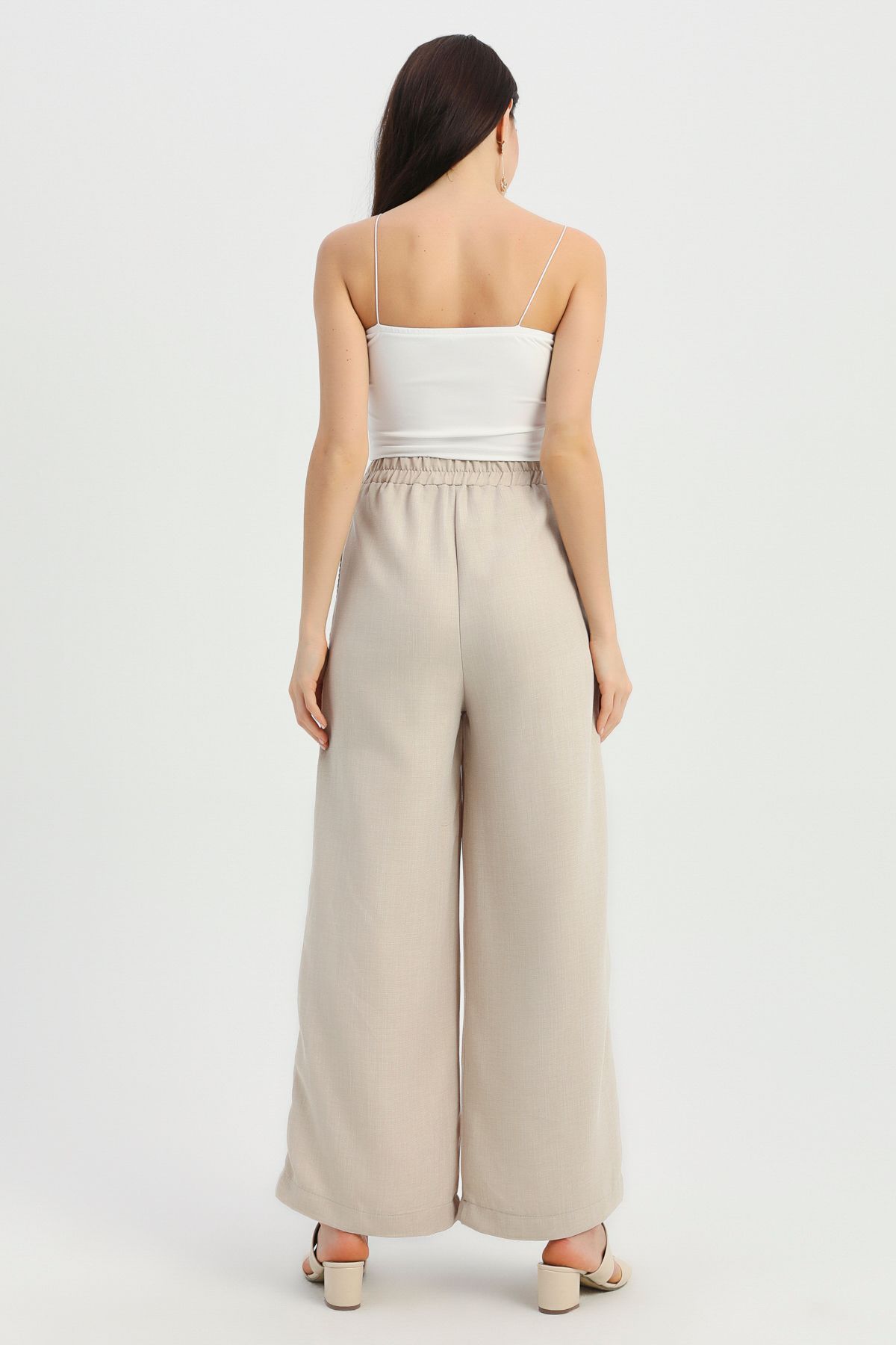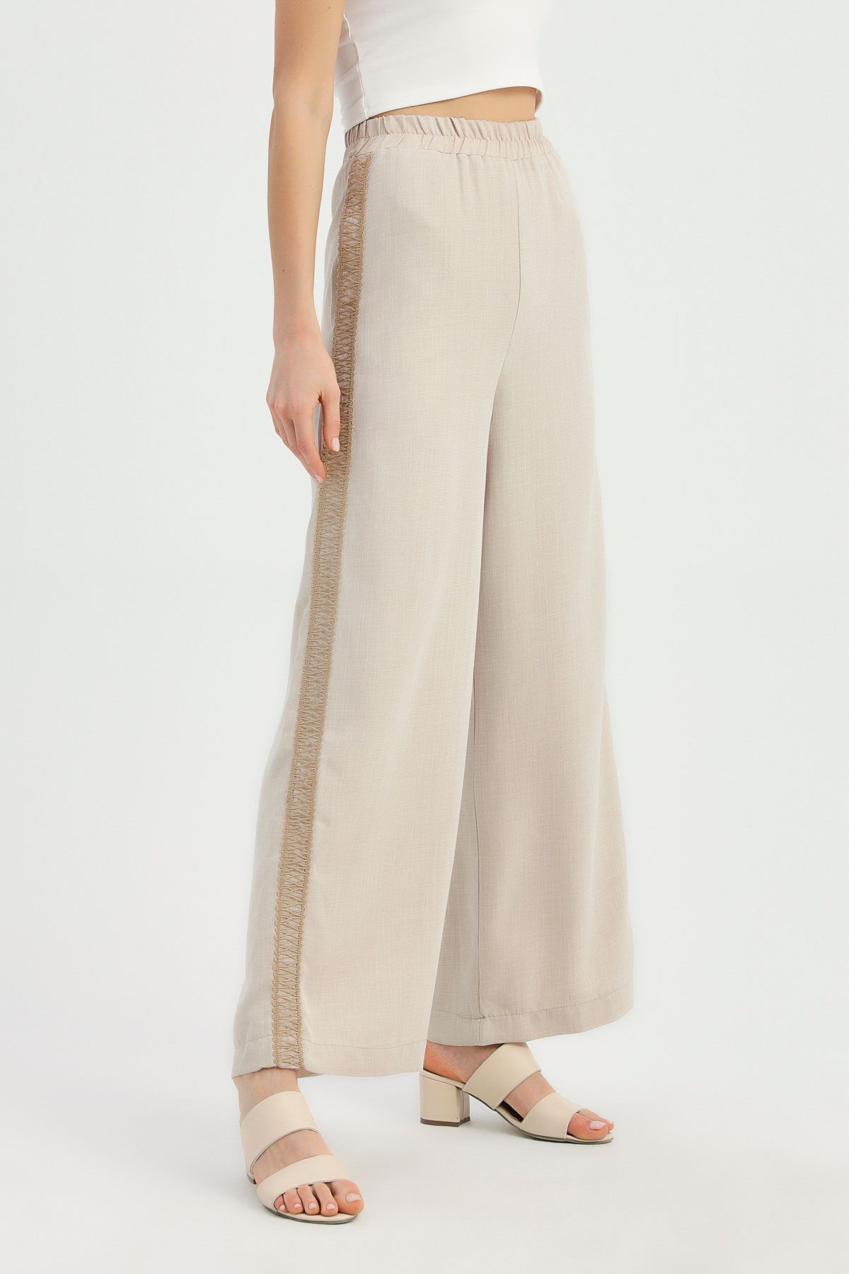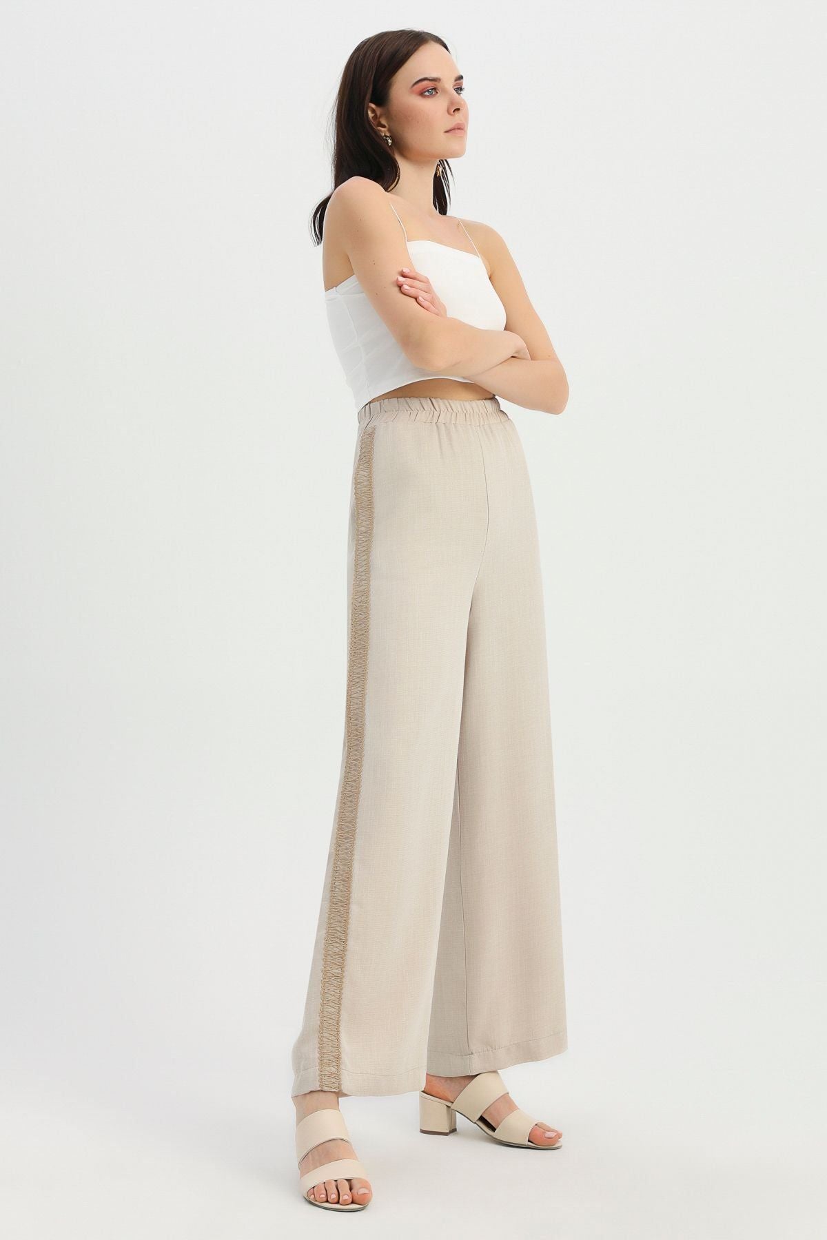 Yanları Şeritli Beli Lastikli Pantolon Bej