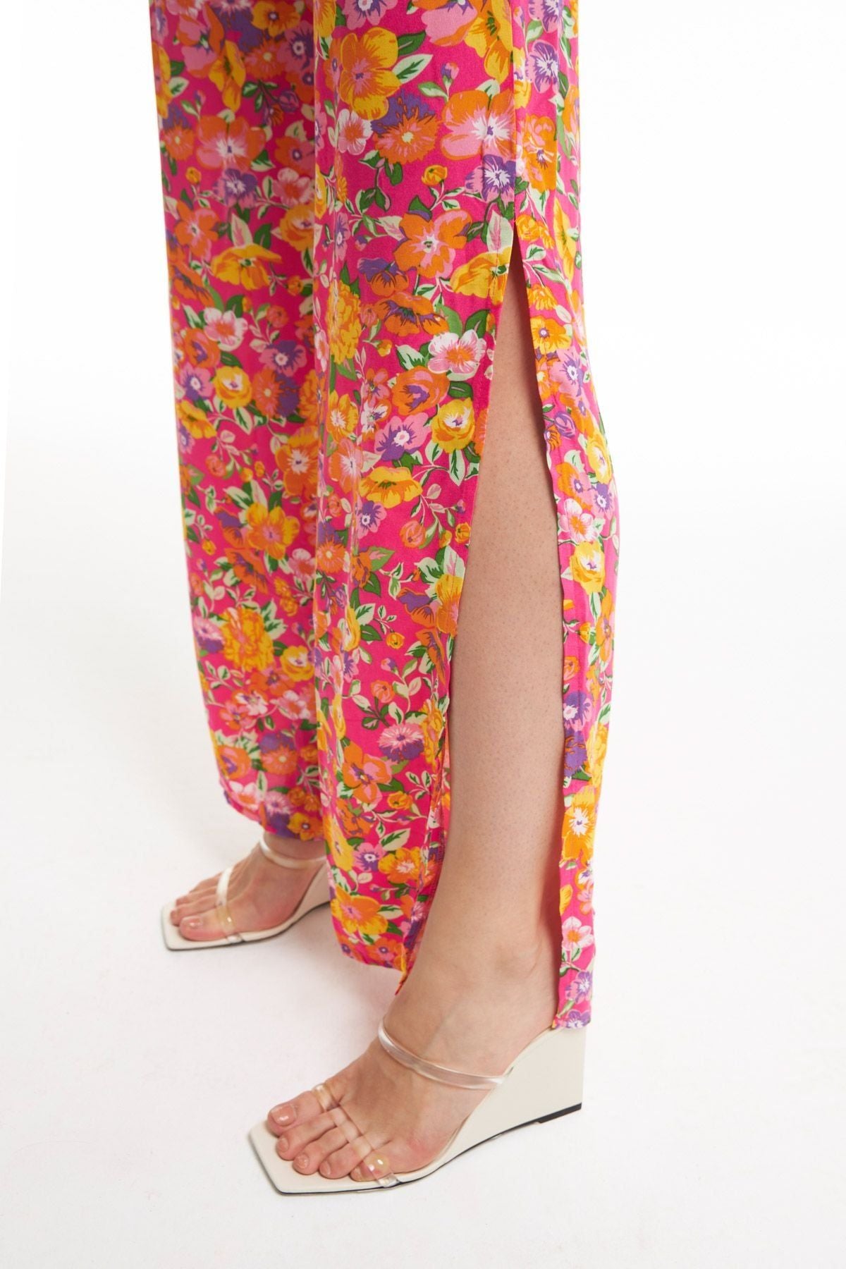 Yanları Yırtmaçlı Desenli Pantolon Pembe