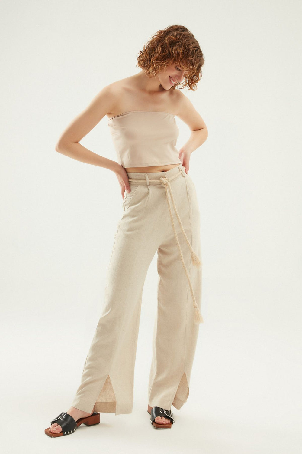 Yırtmaçlı Keten Pantolon Naturel