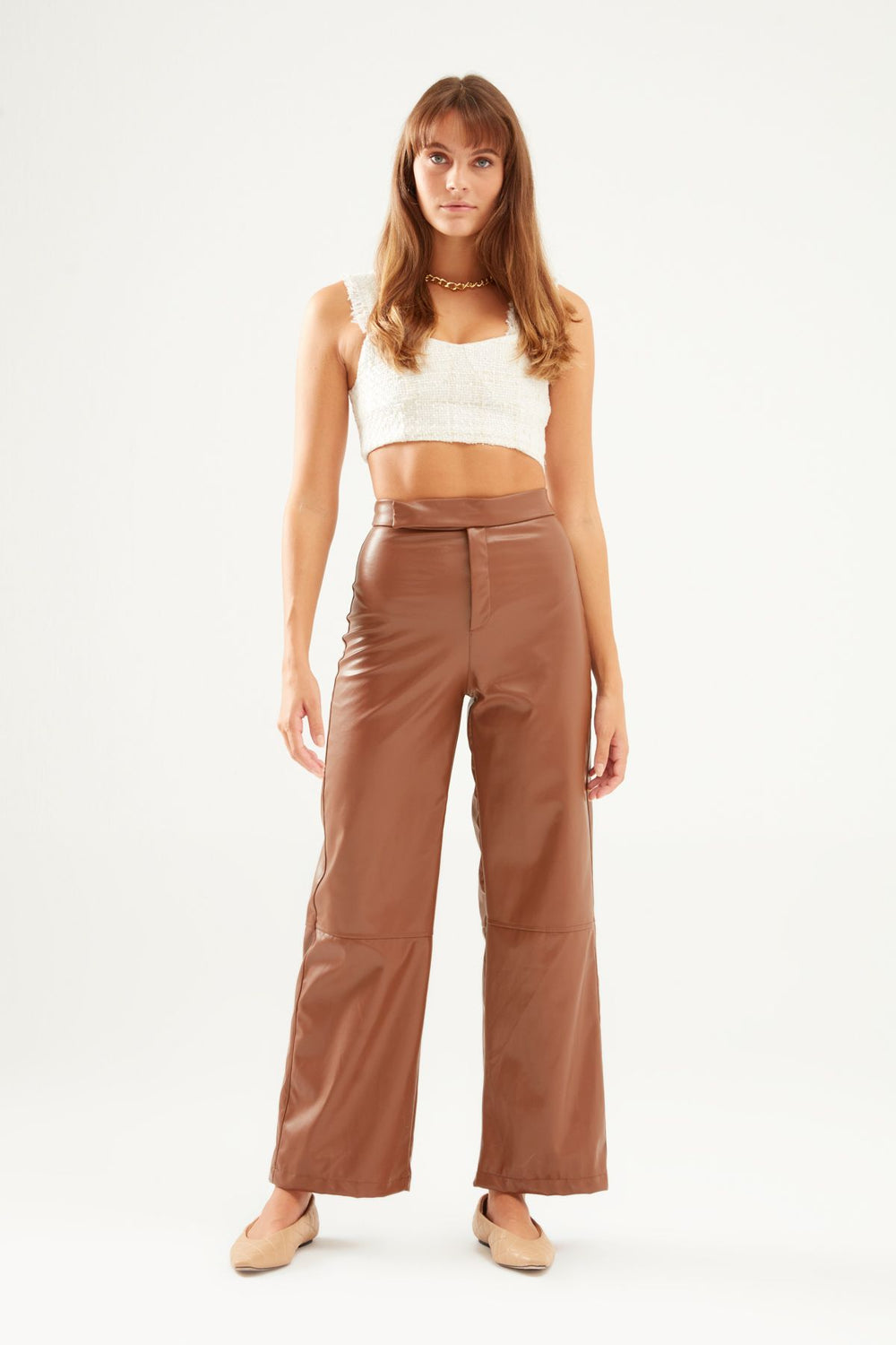 Geniş Paça Deri Pantolon Camel