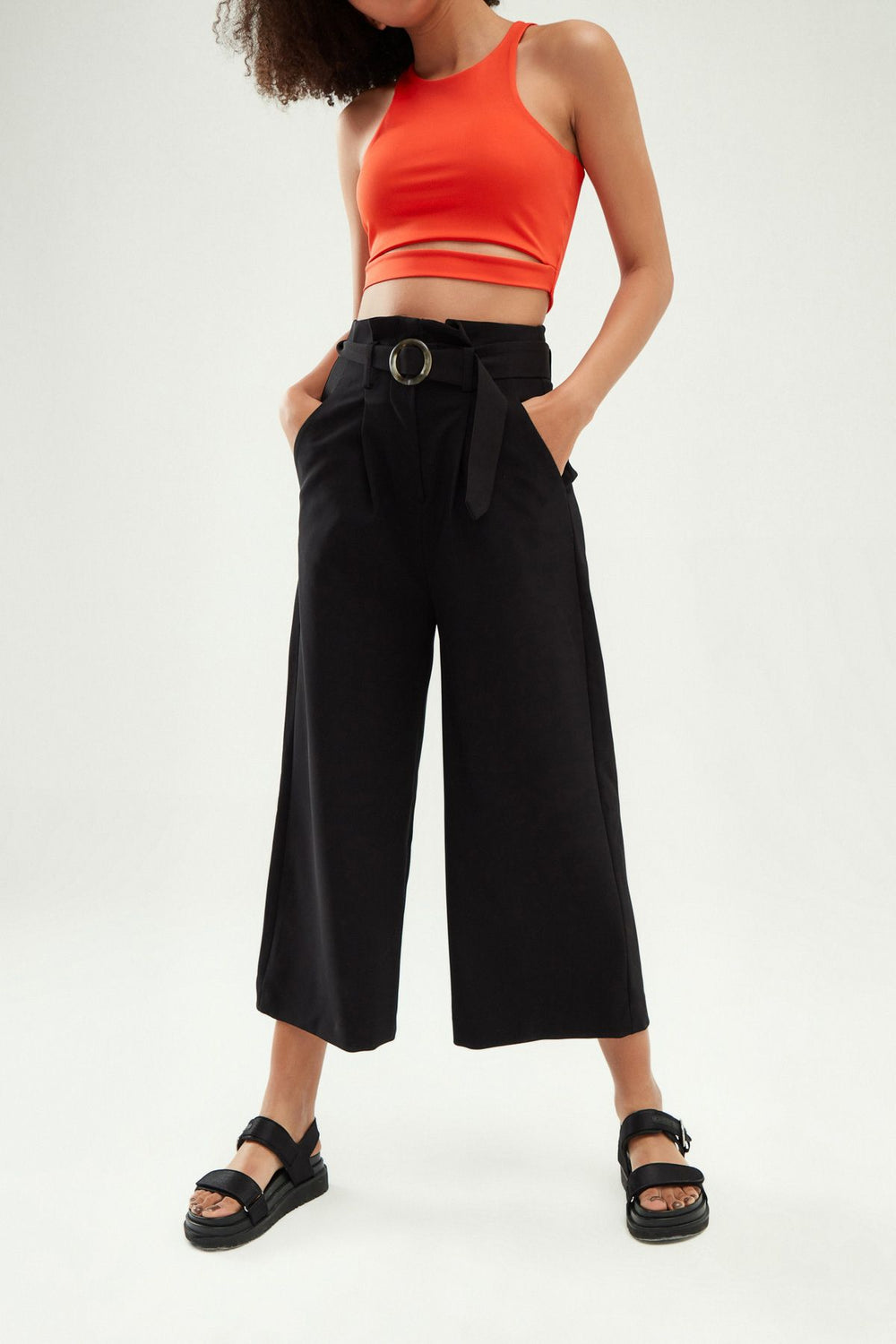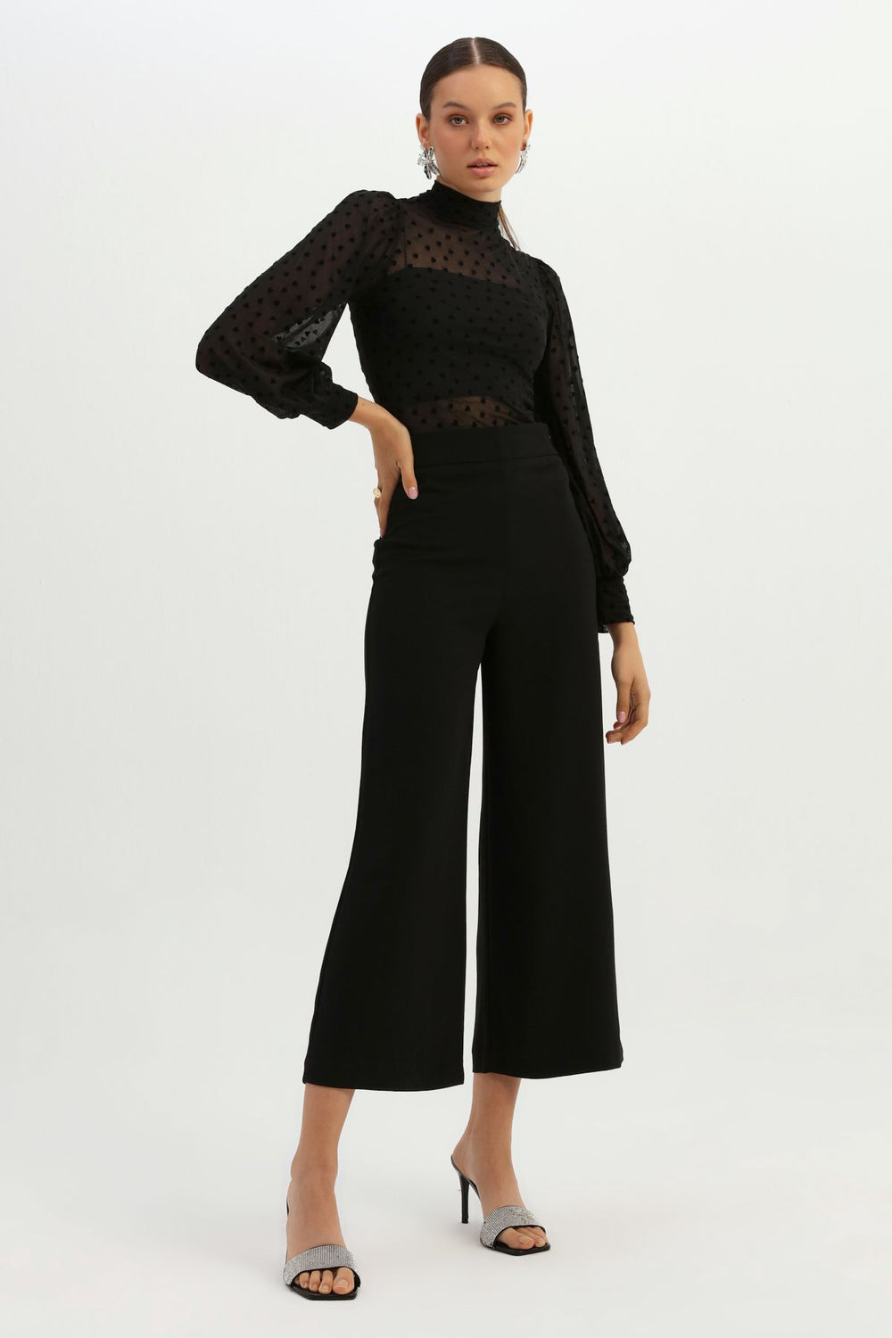Toka Detaylı Yırtmaç Paça Pantolon Siyah