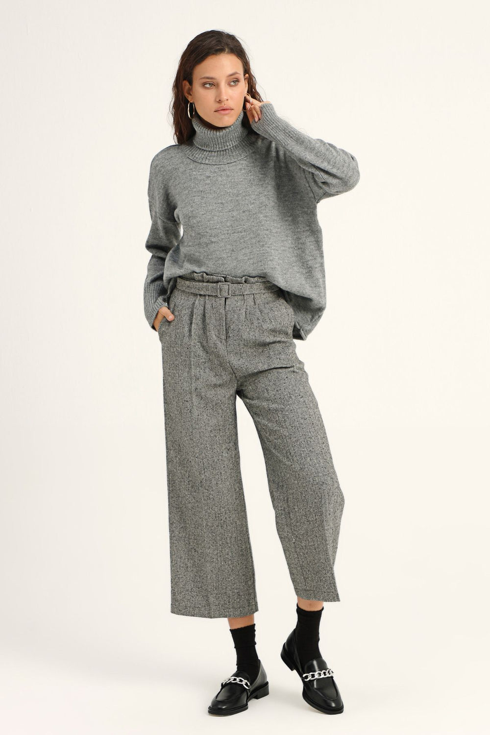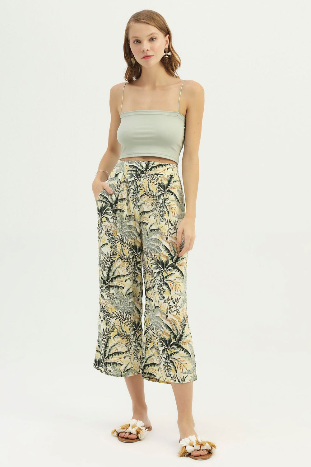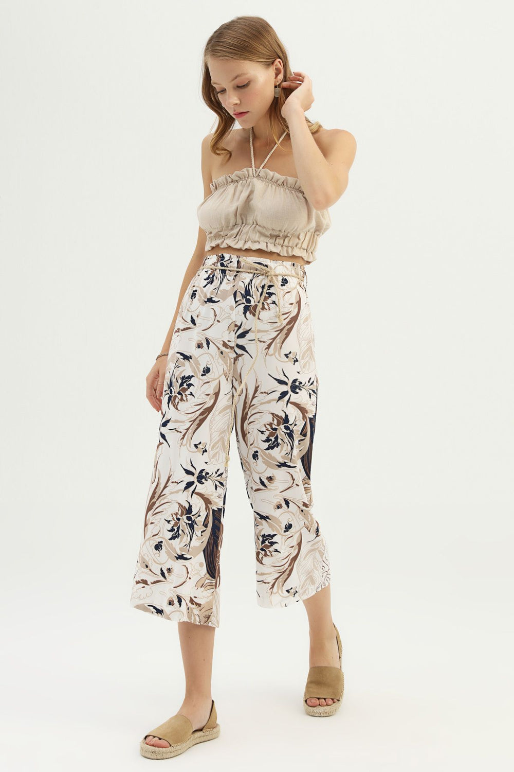 Desenli Hasır İp Kemerli Pantolon Kahverengi