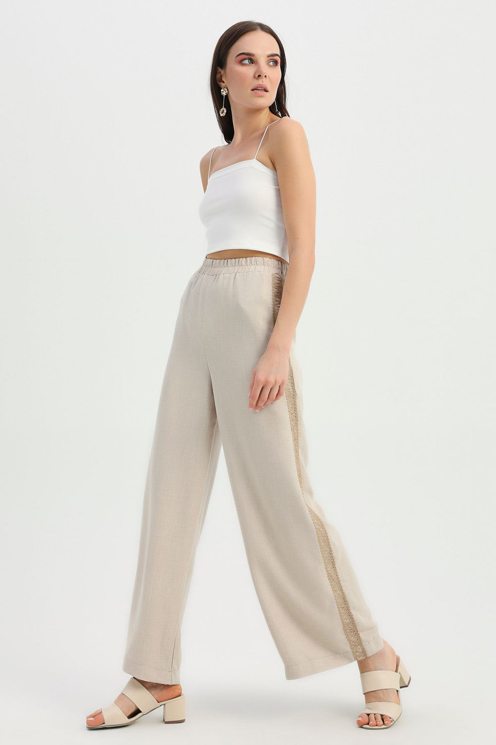 Yanları Şeritli Beli Lastikli Pantolon Bej