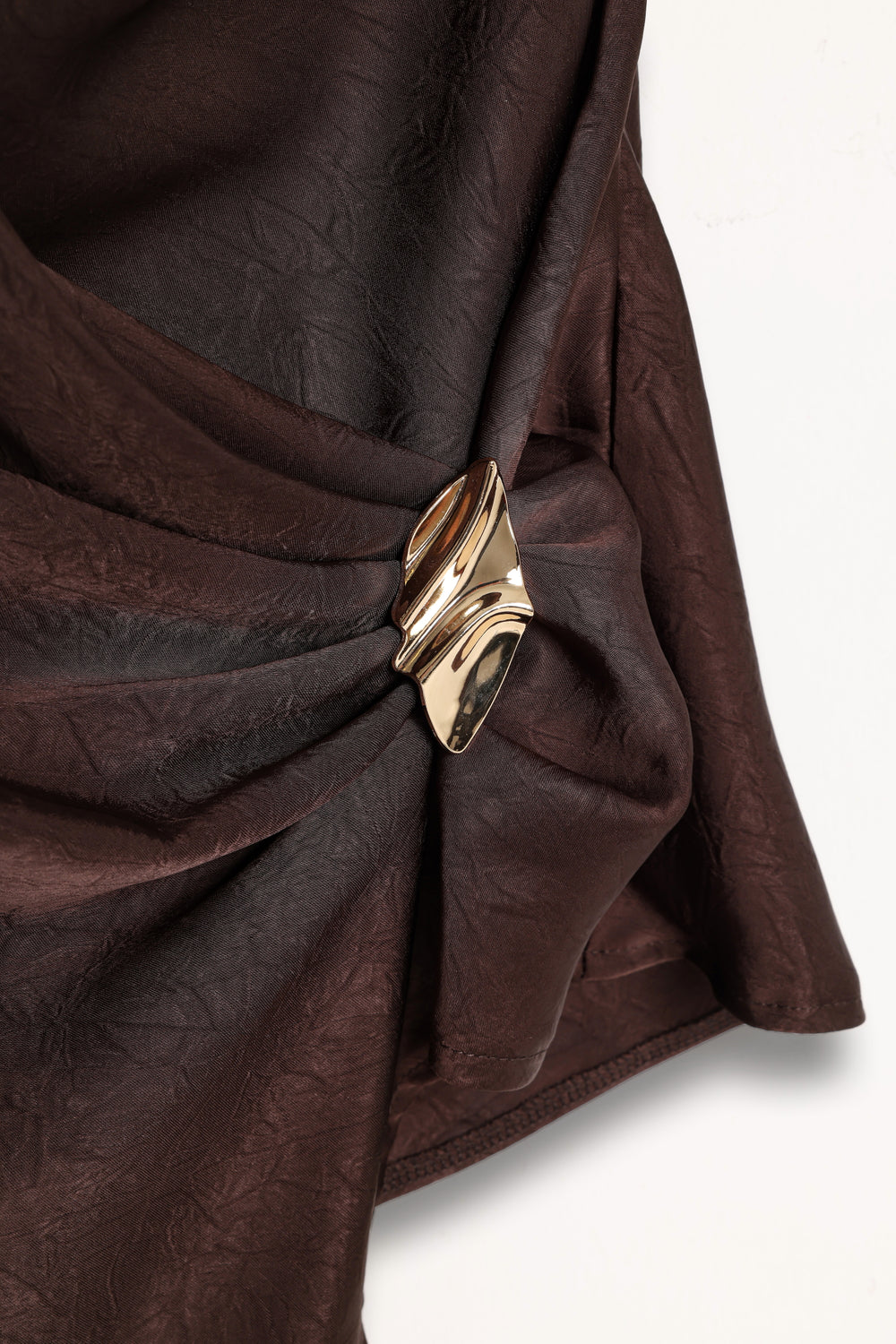 Asimetrik Drapeli Aksesuarlı Saten Bluz Kahverengi