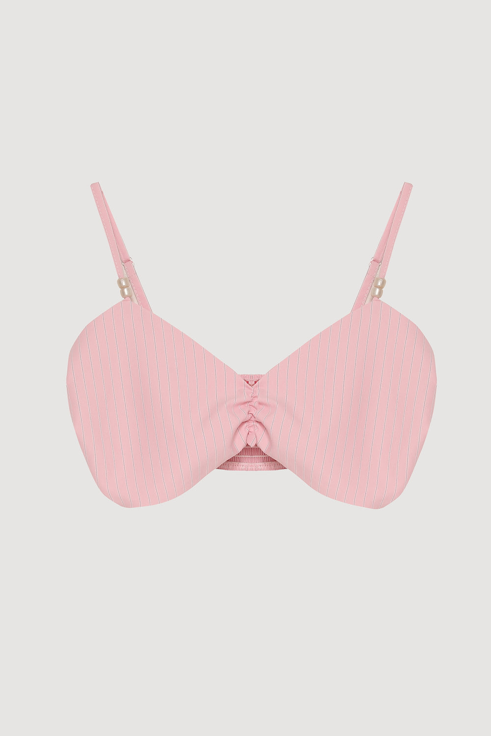 Boncuk Askılı Çizgili Büstiyer Bluz Pembe