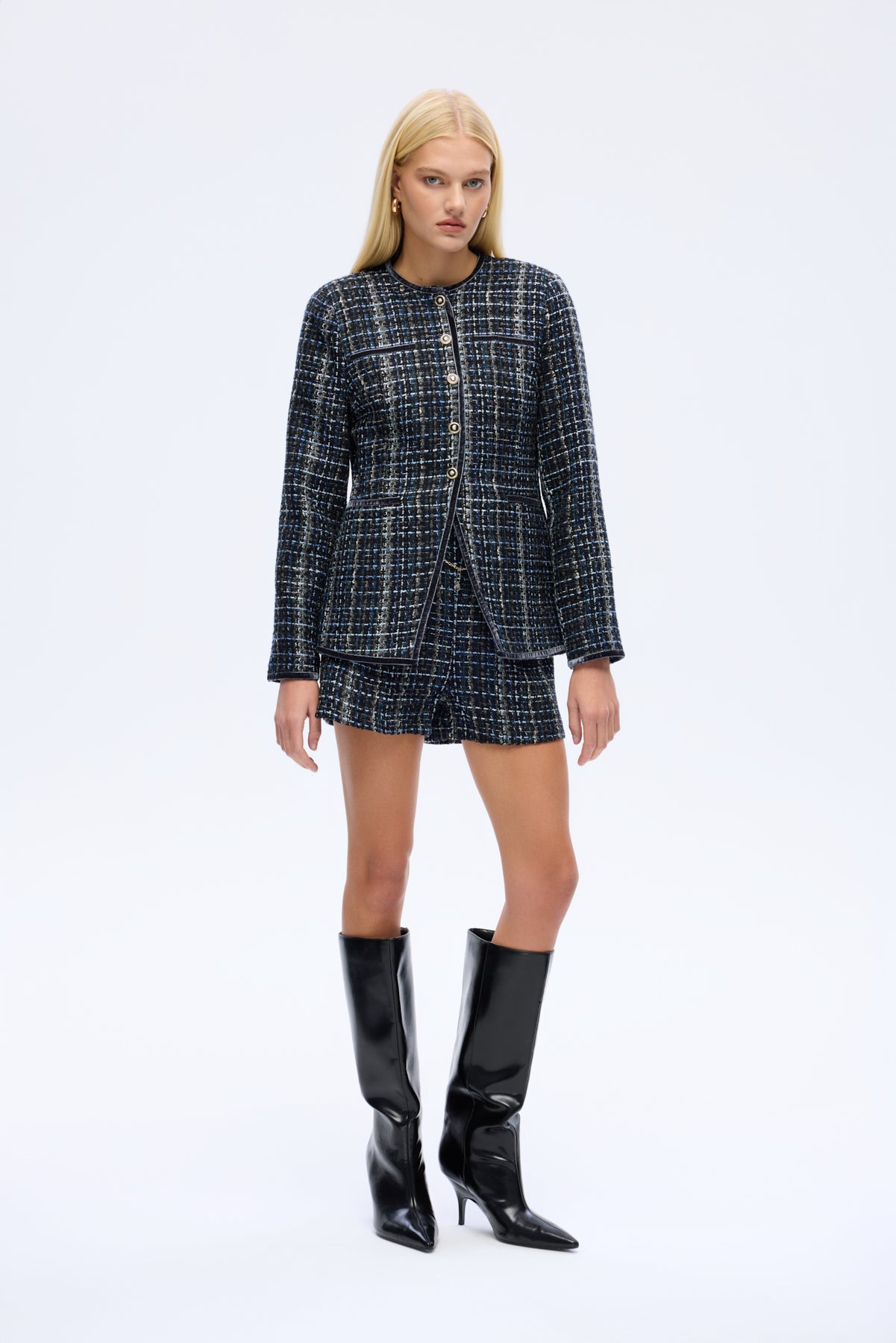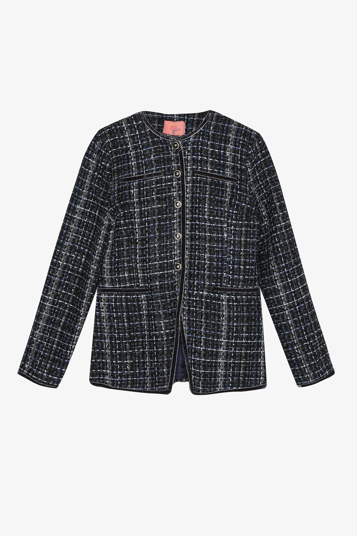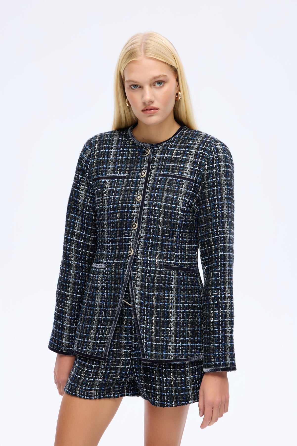 Yuvarlak Yaka Düğmeli Tüvit Ceket Lacivert