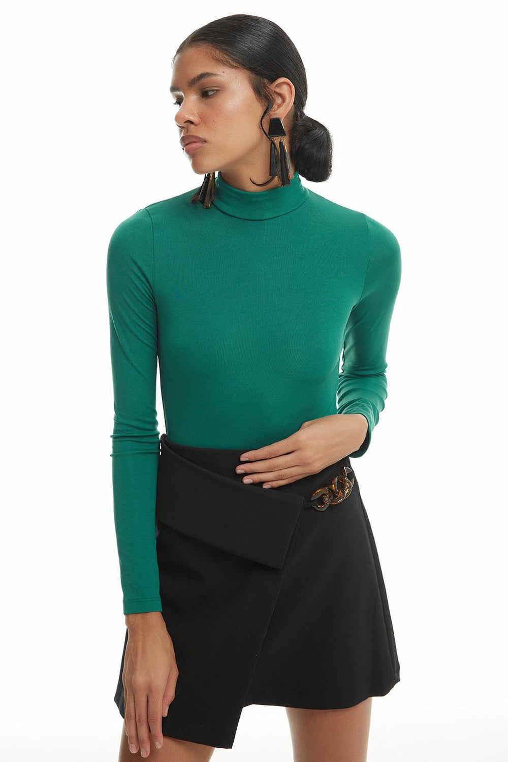 Balıkçı Yaka Bodysuit Koyu Yeşil