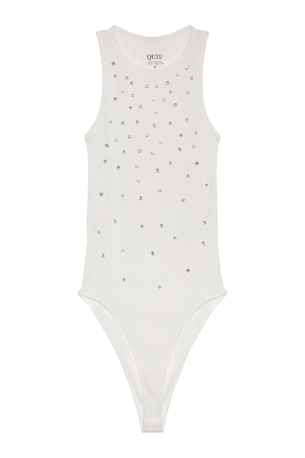 Taş Aksesuarlı Halter Yaka Bodysuit Ekru