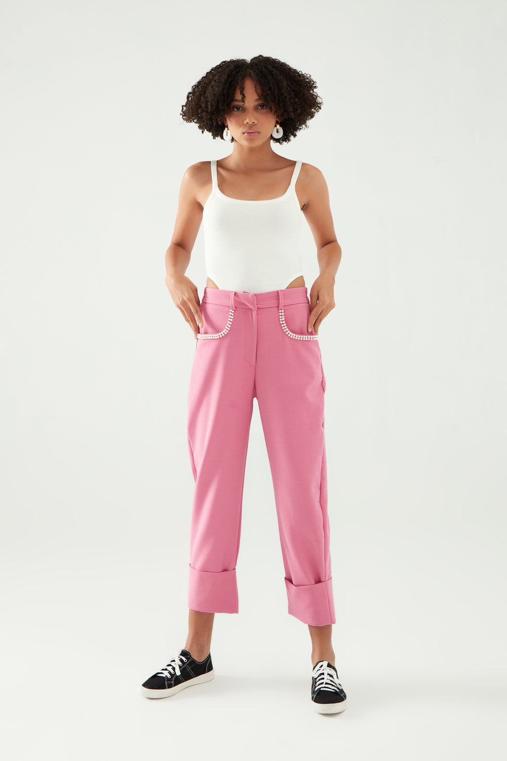 Dekolte Detaylı Bodysuit Şeker Pembe