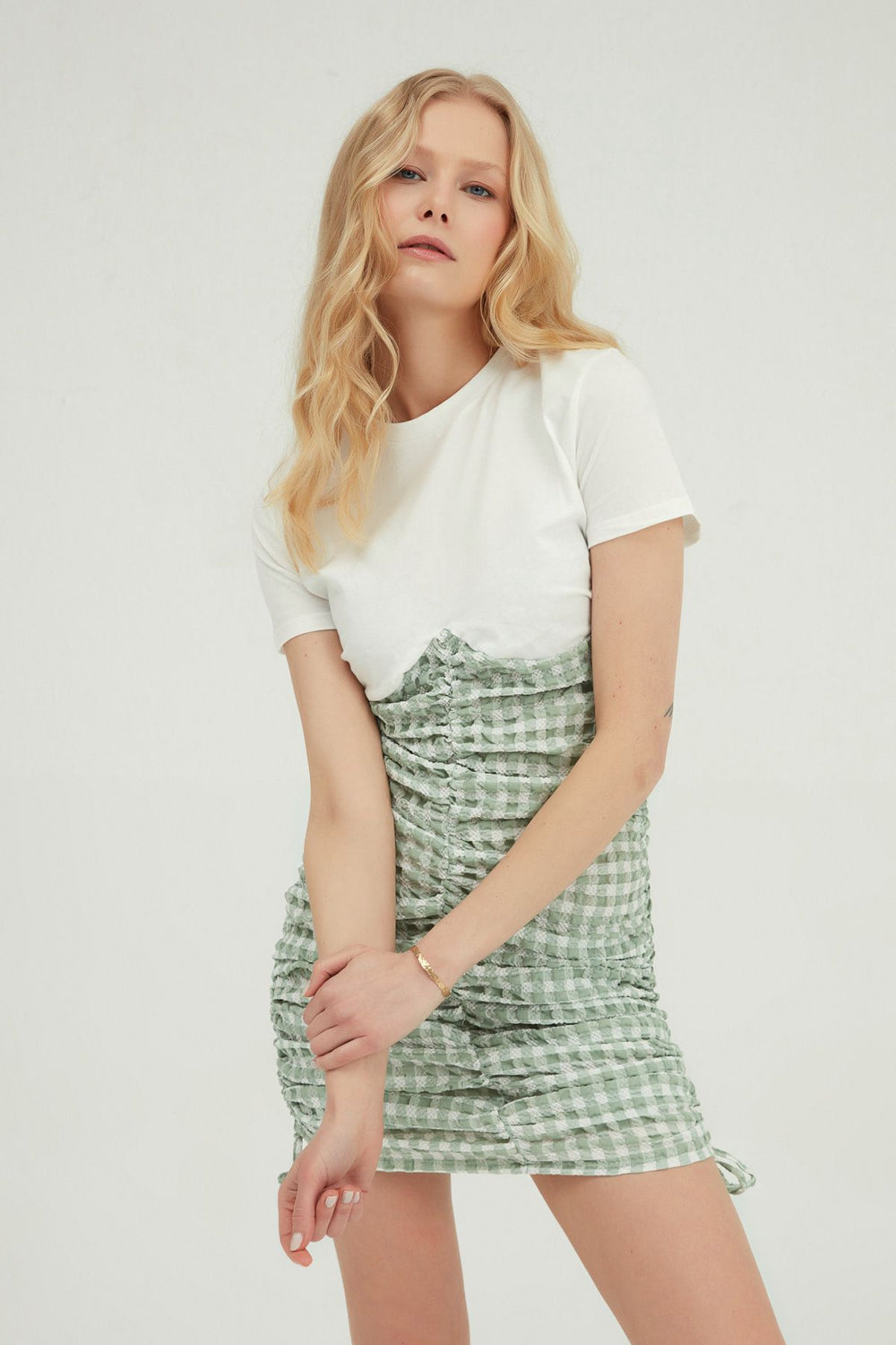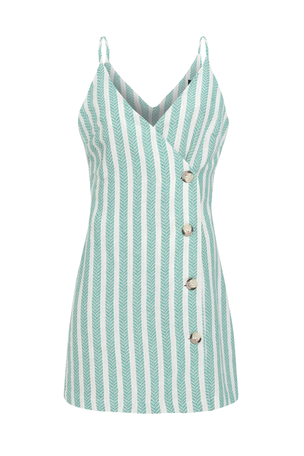 Çizgi Detaylı Tek Omuz Mini Elbise Yeşil