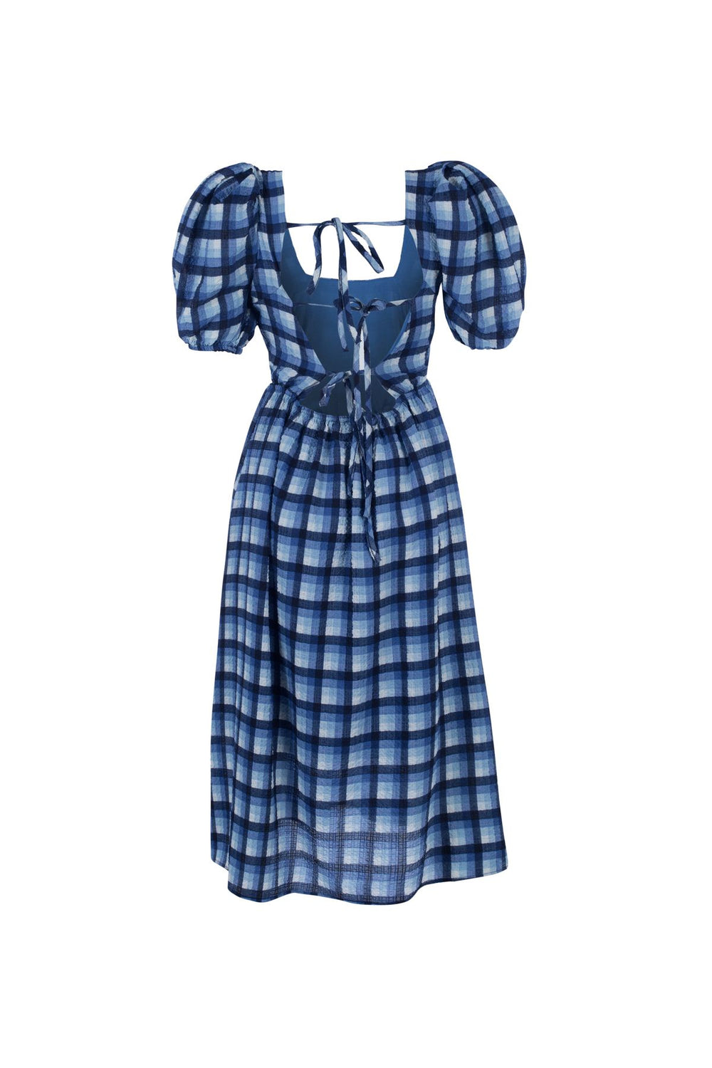 Sırt Dekolteli Askılı Keten Elbise İndigo