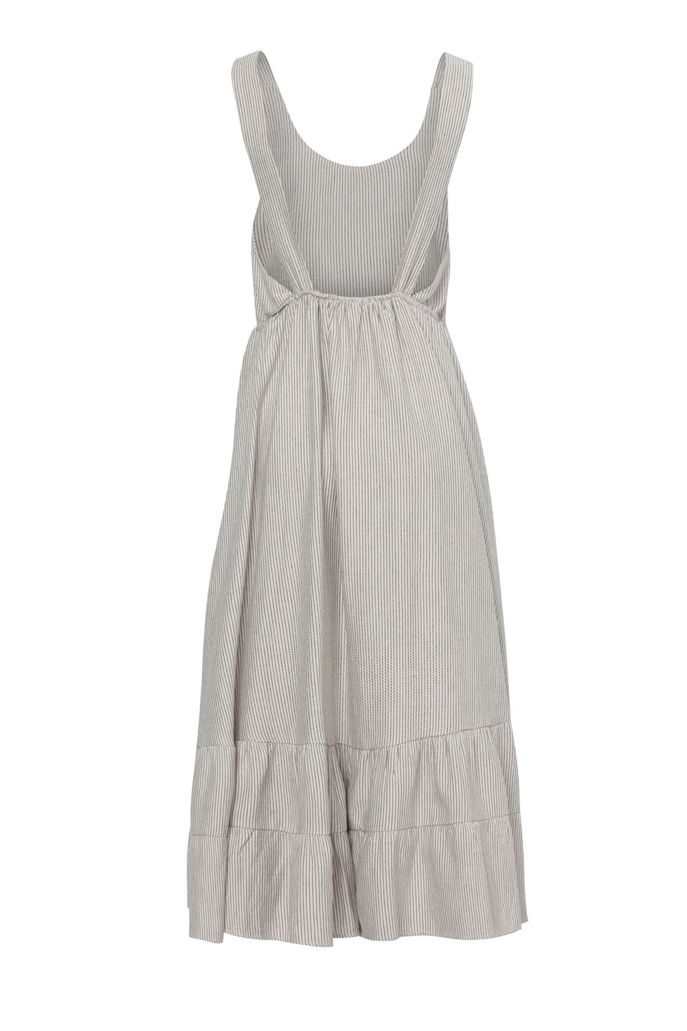 Şerit Detaylı Çizgili Keten Elbise Kahverengi