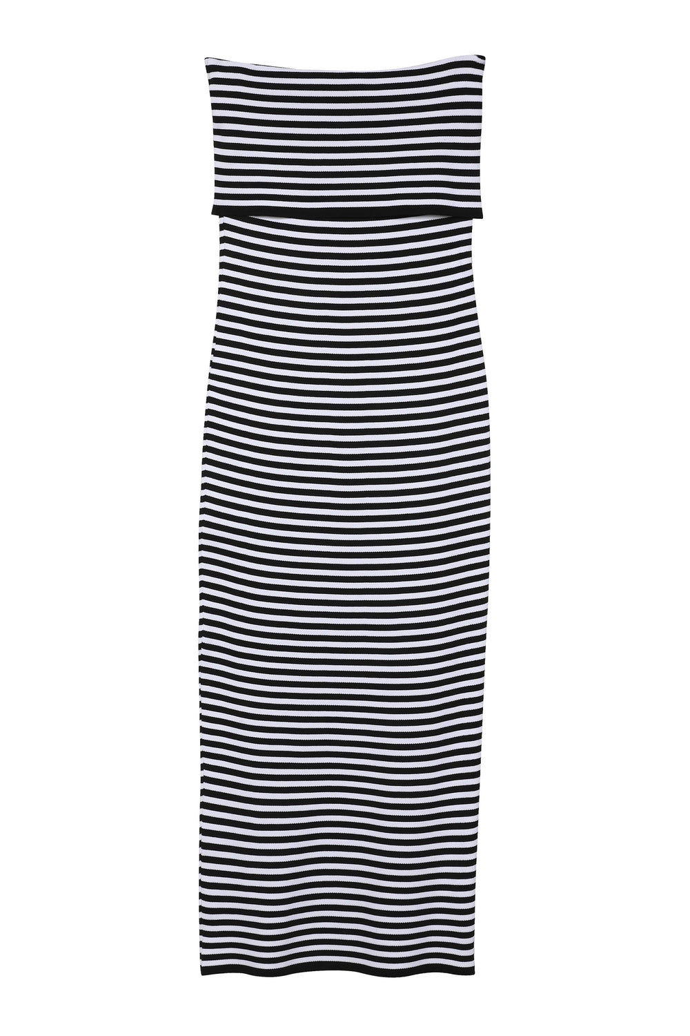 Straplez Detaylı Triko Uzun Elbise Siyah