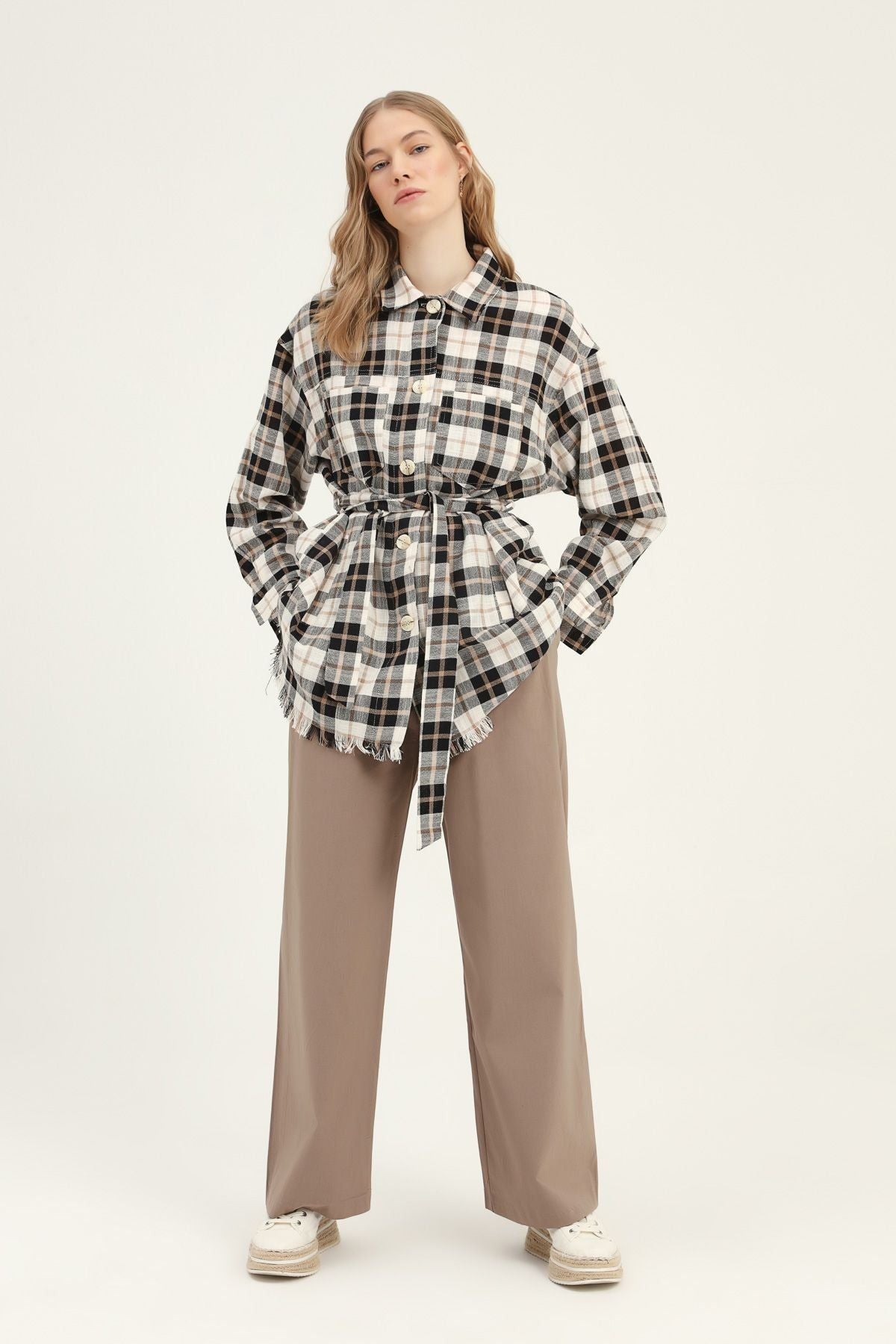 Kendini doğal dokulara ve ekoseye teslim etmek istediğinde aklına bu uzun gömlek gelmeli! %100 pamuklu ve yumuşacık dokusuyla ekosenin gücünün birleştiği uzun gömlek modeli, günlük kombinlerinin kurtarıcısı olacak! Kuşaklı ya da kuşaksız kullanabileceğin bu fonksiyonel model, jean’lerinle tam uyumu yakalayacak. Ekose gömleksiz dolap kalmasın! 😊
