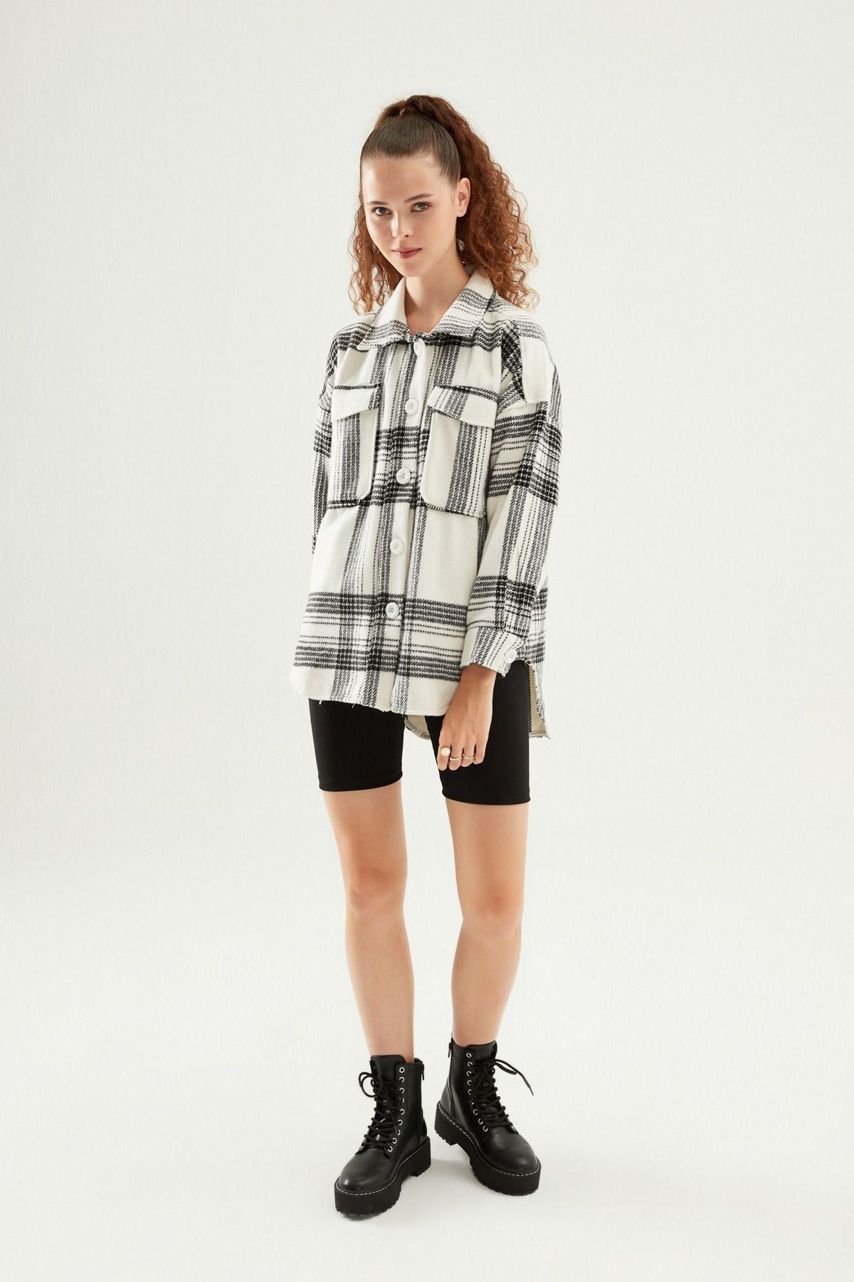 Çizgili Büyük Cepli Gömlek Siyah