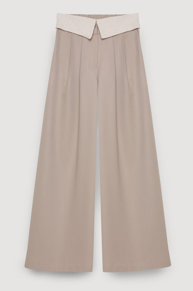 Beli Match Detaylı Bol Paça Pantolon Bej