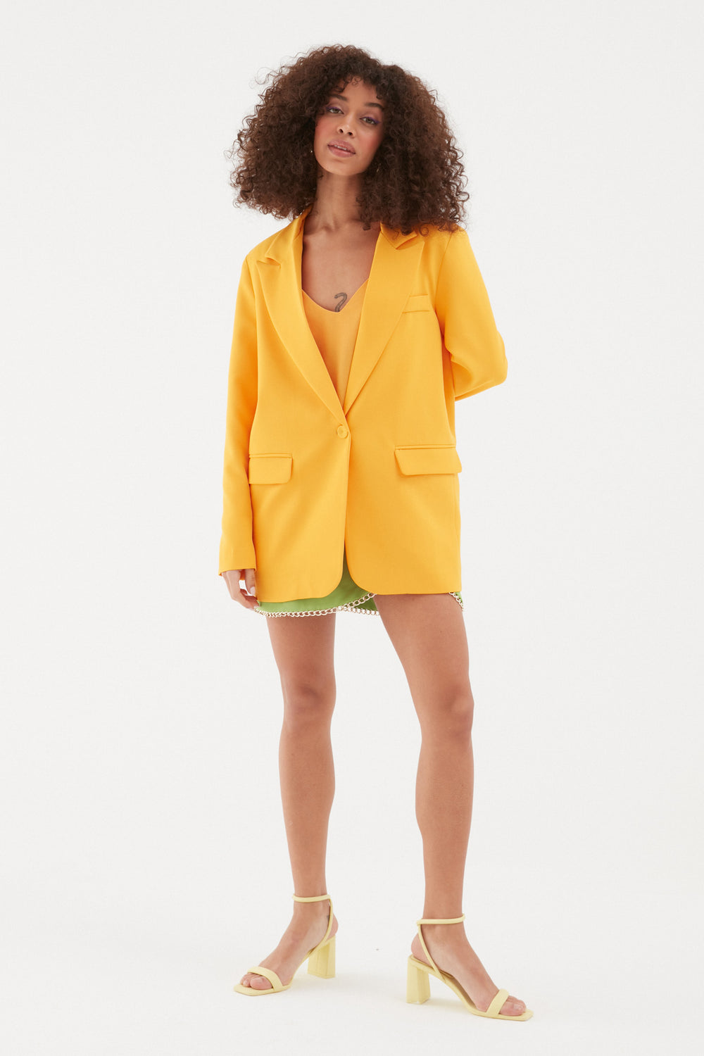 Biraz renk, biraz ciddiyet diyerek rahatlığı da elden bırakmıyorsan baharın stil kodu blazer modeli ile tanışma zamanı gelmiş demektir! Bu blazer modelini yalın bir tişört, onunla kontrast oluşturacak koyu bir denim şort ya da jeanle tercih edebilir; sneaker’larınla oluşturacağın görünümle çıtayı yükseltebilirsin. Tek renk kombinde ısrarcıysan, Quzu’nun konforlu büstiyerleri ve aynı renk pantolonu ile kombinini tamamlayabilirsin.