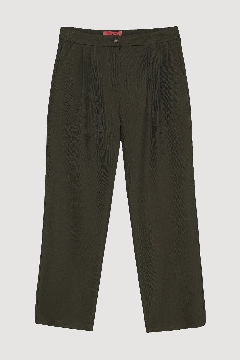 Yüksek bel, çift pile detaylı, fermuar ve düğme kapamalı, çift cepli, bilek boy, modern ve şık görünümlü jogger pantolon.