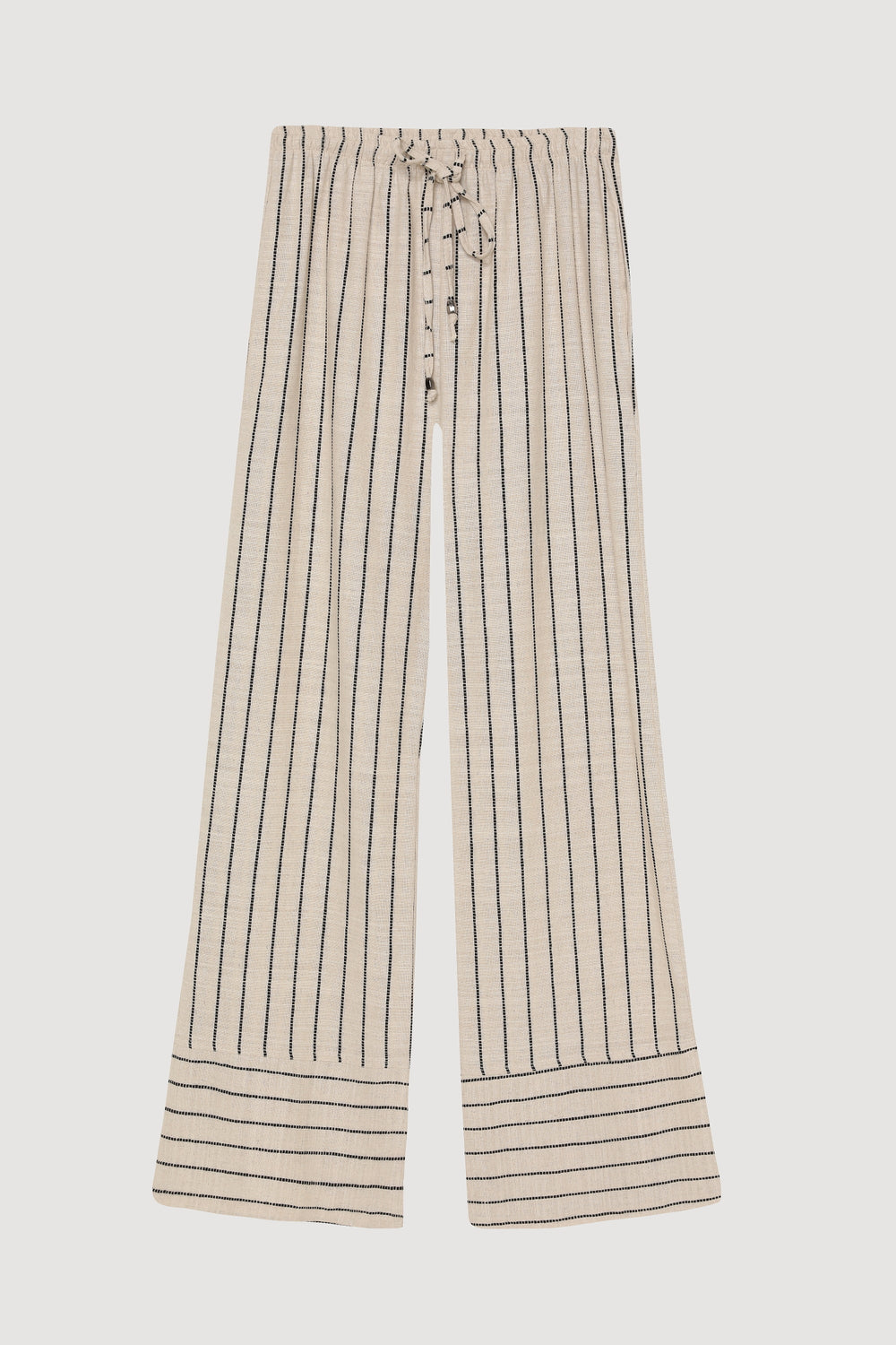 Çizgi Desenli Bilek Detaylı Palazzo Keten Pantolon Naturel
