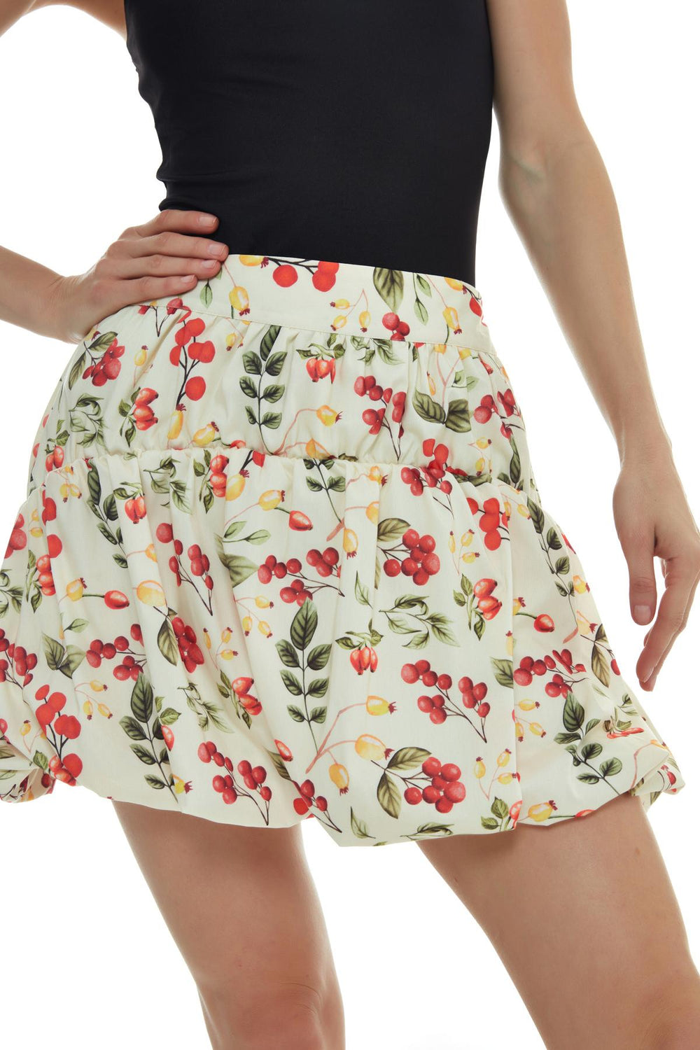 Renkli desenli, içi astarlı, arkadan gizli fermuarlı, balon etek.